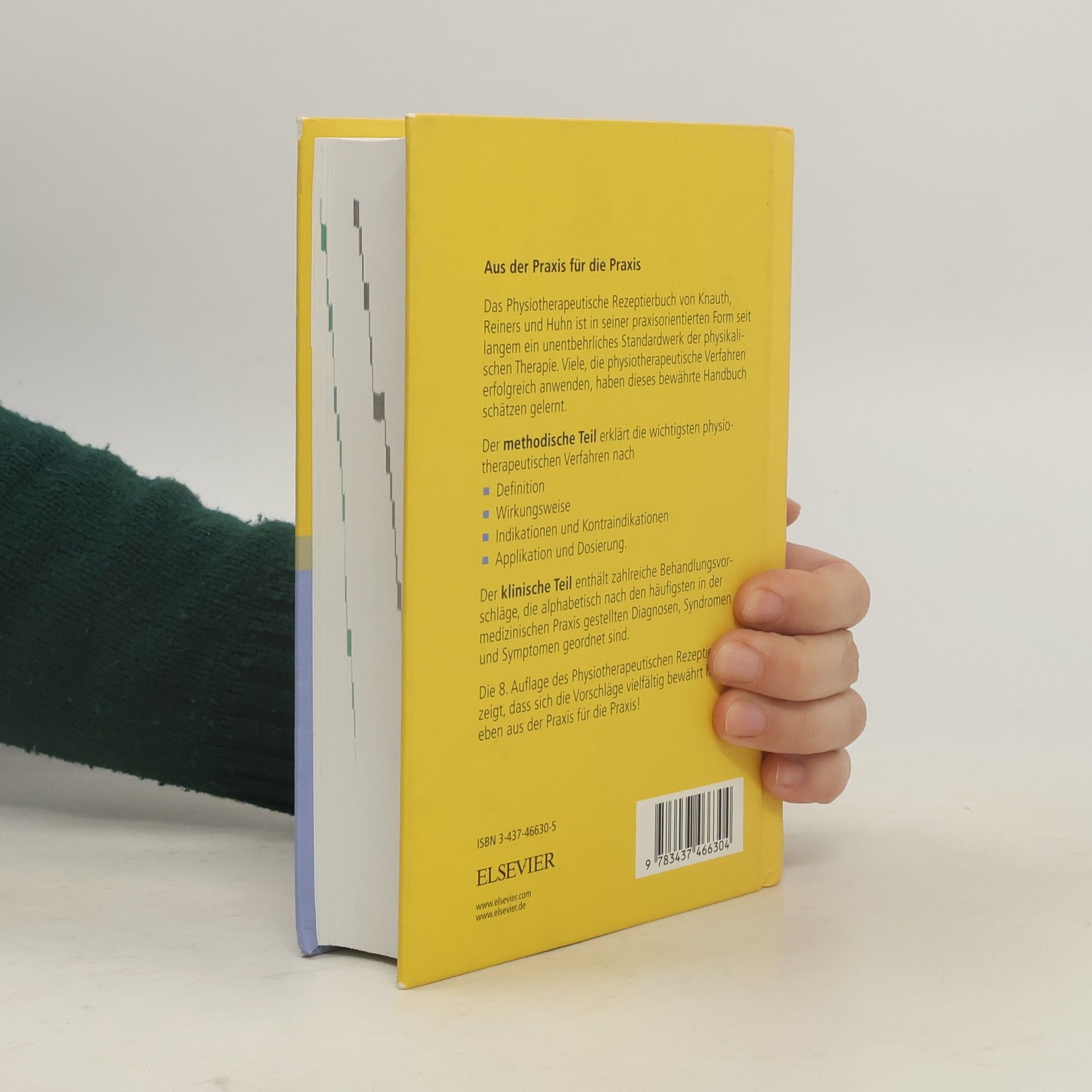 Das Physiotherapeutische Rezeptierbuch von Knauth, Reiners und Huhn ist in seiner praxisorientierten Form seit langem ein unentbehrliches Standardwerk der physikalischen Therapie. Viele, die physiotherapeutische Verfahren erfolgreich anwenden, haben dieses bewährte Handbuch schätzen gelernt. Der methodische Teil erklärt die wichtigsten physiotherapeutischen Verfahren nach Definition Wirkungsweise Indikationen und Kontraindikationen Applikation und Dosierung. Der klinische Teil enthält zahlreiche Behandlungsvorschläge, die alphabetisch nach den häufigsten in der medizinischen Praxis gestellten Diagnosen, Syndromen und Symptomen geordnet sind. Die 8. Auflage des Physiotherapeutischen Rezeptierbuchs zeigt, dass sich die Vorschläge vielfältig bewährt haben - eben aus der Praxis für die Praxis!