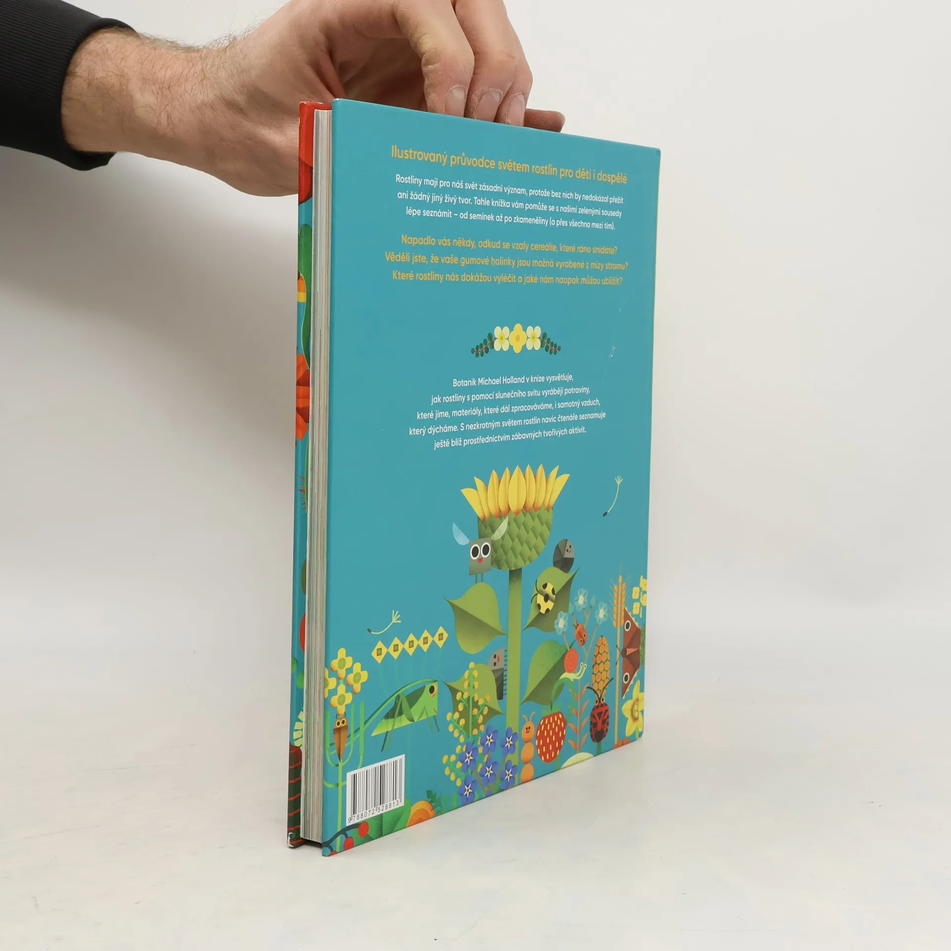 Ilustrovaný průvodce světem rostlin pro děti i dospělé. Rostliny mají pro náš svět zásadní význam, protože bez nich by nedokázal přežít ani žádný jiný živý tvor. Tahle knížka vám pomůže se s našimi listnatými sousedy lépe seznámit – od semínek až po zkameněliny (a přes všechno mezi tím). Napadlo vás někdy, odkud se vzaly cereálie, které ráno snídáte? Věděli jste, že vaše gumové holínky jsou možná vyrobené z mízy stromu? Které rostliny nás dokážou vyléčit a jaké nám naopak mohou ublížit? Botanik Michael Holland v knize vysvětluje, jak rostliny s pomocí slunečního svitu vyrábějí potraviny, které jíme, materiály, které dál zpracováváme, i samotný vzduch, který dýcháme. S nezkrotným světem rostlin navíc čtenáře seznamuje ještě blíž prostřednictvím zábavných tvořivých aktivit. Na naší planetě můžeme potkat více než 400 000 druhů, pojďme se tedy o těch neuvěřitelných organismech dozvědět víc!