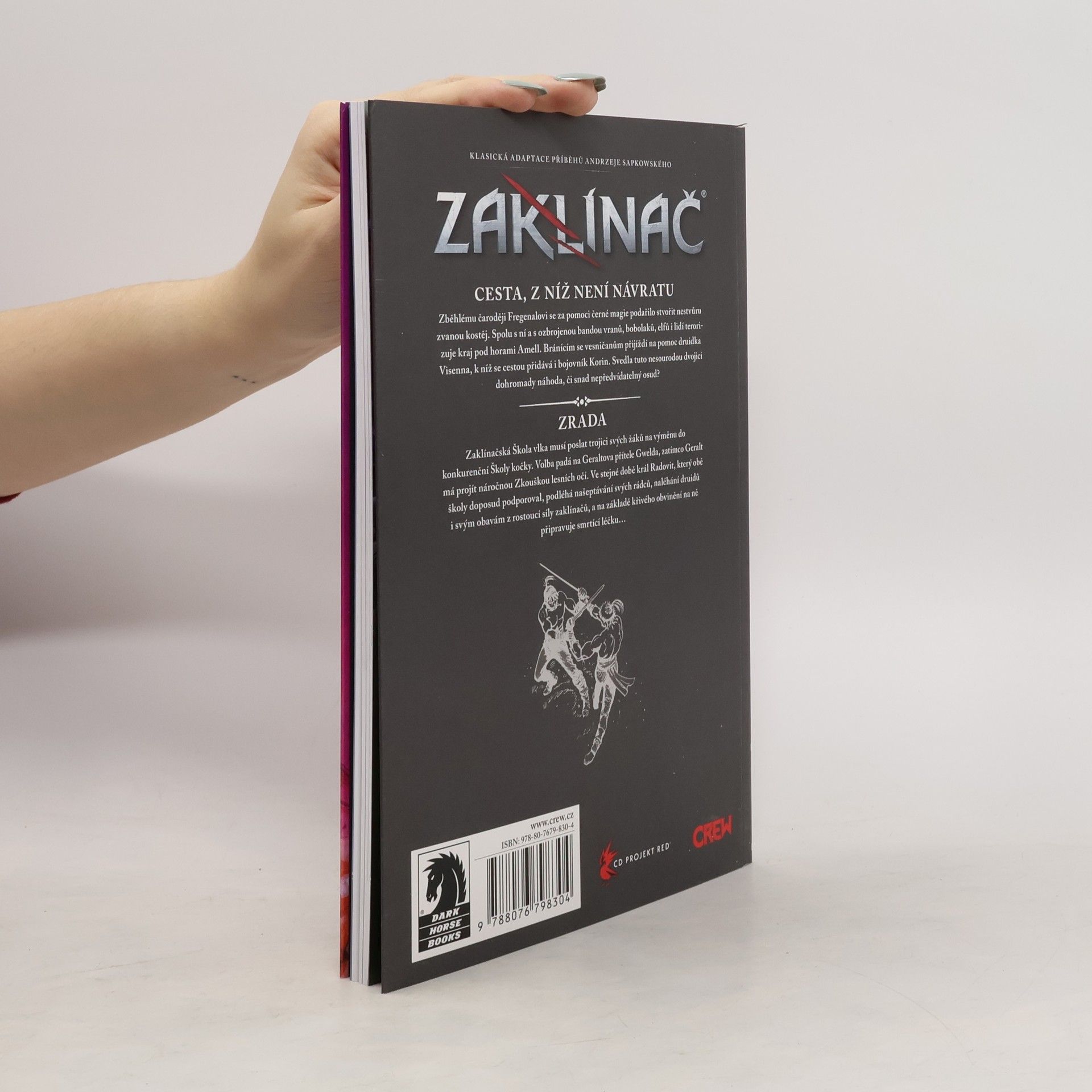 Cesta, z níž není návratu Zběhlému čaroději Fregenalovi se za pomoci černé magie podařilo stvořit nestvůru zvanou kostěj. Spolu s ní a s ozbrojenou bandou vranů, bobolaků, elfů i lidí terorizuje kraj pod horami Amell. Bránícím se vesničanům přijíždí na pomoc druidka Visenna, k níž se cestou přidává i bojovník Korin. Svedla tuto nesourodou dvojici dohromady náhoda, či snad nepředvídatelný osud? Zrada Zaklínačská Škola vlka musí poslat trojici svých žáků na výměnu do konkurenční Školy kočky. Volba padá na Geraltova přítele Gwelda, zatímco Geralt má projít náročnou Zkouškou lesních očí. Ve stejné době král Radovit, který obě školy doposud podporoval, podléhá našeptávání svých rádců, naléhání druidů i svým obavám z rostoucí síly zaklínačů, a na základě křivého obvinění na ně připravuje smrtící léčku...