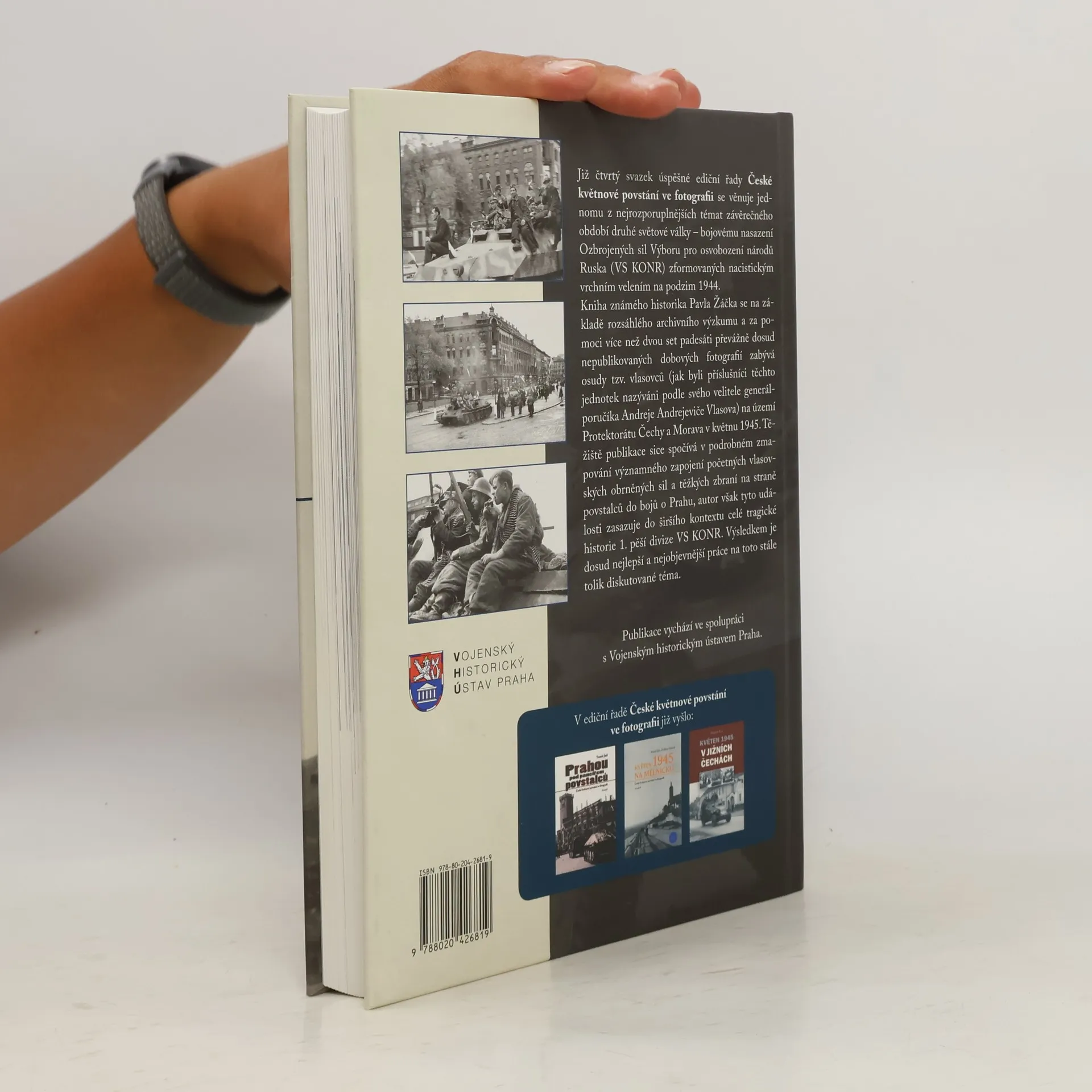 Již čtvrtý svazek úspěšné ediční řady České květnové povstání ve fotografii se věnuje jednomu z nejrozporuplnějších témat závěrečného období druhé světové války – bojovému nasazení Ozbrojených sil Výboru pro osvobození národů Ruska zformovaných nacistickým vrchním velením na podzim 1944. Kniha známého historika Pavla Žáčka za pomoci několika set převážně dosud nepublikovaných dobových fotografií mapuje osudy Vlasovců (jak byli příslušníci těchto jednotek nazýváni podle svého velitele generálporučíka Andreje Andrejeviče Vlasova) na území Protektorátu Čechy a Morava v květnu 1945. Autor se soustřeďuje především na významné zapojení početných vlasovských obrněných sil a těžkých zbraní na straně povstalců do bojů o Prahu. V závěru objevné publikace přinášející mnoho dosud neznámých faktů nechybí připomínka tragických osudů těchto vojáků po skončení války.