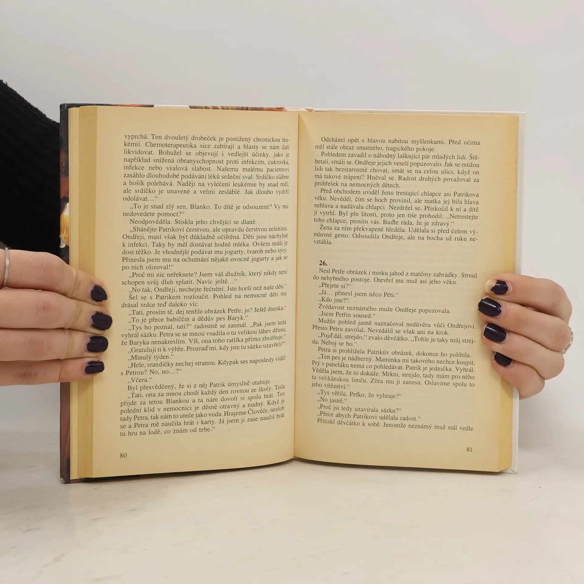 Psychologický román zachycuje drama jedné neúplné rodiny. Šestiletý Patrik je po rozvodu rodičů svěřen do otcovské péče, s kterým si dobře rozumí. Počáteční idyla je záhy narušena chlapcovým zhoršujícím se zdravotním stavem. Diagnóza zní: leukémie. To, co prožívá otec takto nečekaně postiženého dítěte, vylíčila autorka ve velmi citlivé a nic neskrývající knize.
