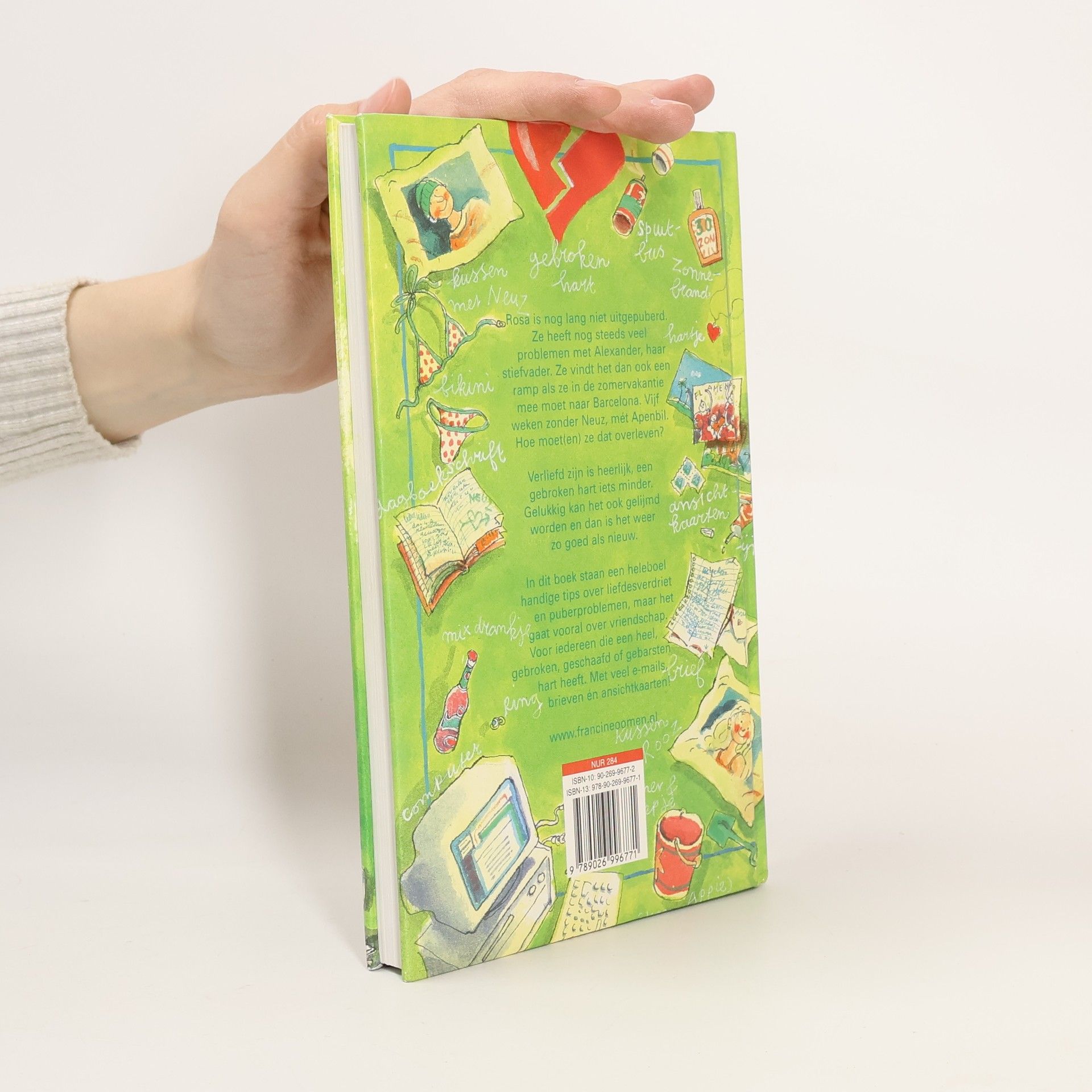 Rosa is nog lang niet uitgepuberd. Zij heeft nog steeds veel problemen met haar stiefvader. En dan moet ze ook nog mee op vakantie. Vijf weken zonder Neuz, haar vriendje. Hoe moet ze dat overleven?In dit boek staan een heleboel handige tips over liefdesverdriet en puberproblemen, maar het gaat vooral over vriendschap. Voor iedereen die een heel, gebroken, geschaafd of gebarsten hart heeft. Met veel e-mails, brieven én ansichtkaarten!