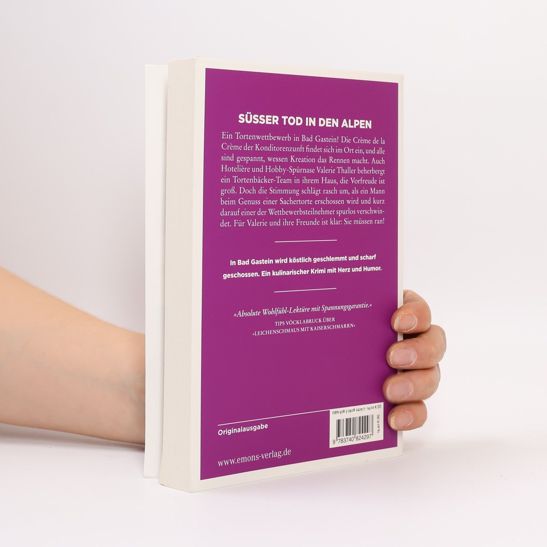 Ein kulinarischer Krimigenuss mit Herz und Humor Mit der Idylle in Bad Gastein ist es vorbei, als in Valerie Thallers Grand Hotel ein Tortenwettbewerb stattfindet. Denn der bringt nicht nur Unruhe in den Kurort, sondern auch einen Toten: Ein Tourist wird beim Genuss einer Sachertorte erschossen, wenig später verschwindet einer der Wettbewerbsteilnehmer spurlos. Hauptverdächtiger ist ausgerechnet Valeries Schwager, und so stolpert sie mit ihrer Freundin Nora mal wieder mitten hinein in eine Mordermittlung.