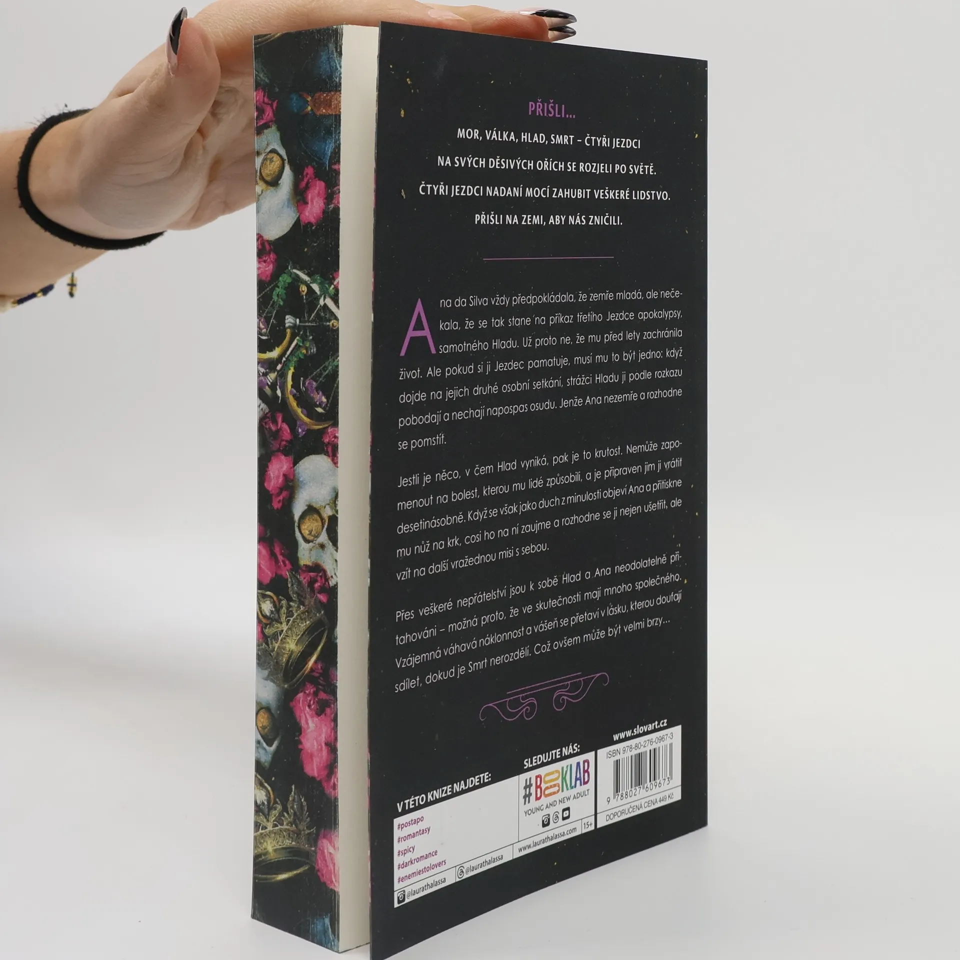 PŘIŠLI… MOR, VÁLKA, HLAD, SMRT – ČTYŘI JEZDCI NA SVÝCH DĚSIVÝCH OŘÍCH SE ROZJELI PO SVĚTĚ. ČTYŘI JEZDCI NADANÍ MOCÍ ZAHUBIT VEŠKERÉ LIDSTVO. PŘIŠLI NA ZEMI, ABY NÁS ZNIČILI. Ana da Silva vždy předpokládala, že zemře mladá, ale nečekala, že se tak stane na příkaz třetího Jezdce apokalypsy, samotného Hladu. Už proto ne, že mu před lety zachránila život. Ale pokud si ji Jezdec pamatuje, musí mu to být jedno: když dojde na jejich druhé osobní setkání, strážci Hladu ji podle rozkazu pobodají a nechají napospas osudu. Jenže Ana nezemře a rozhodne se pomstít. Jestli je něco, v čem Hlad vyniká, pak je to krutost. Nemůže zapomenout na bolest, kterou mu lidé způsobili, a je připraven jim ji vrátit desetinásobně. Když se však jako duch z minulosti objeví Ana a přitiskne mu nůž na krk, cosi ho na ní zaujme a rozhodne se ji nejen ušetřit, ale vzít na další vražednou misi s sebou. Přes veškeré nepřátelství jsou k sobě Hlad a Ana neodolatelně přitahováni – možná proto, že ve skutečnosti mají mnoho společného. Vzájemná váhavá náklonnost a vášeň se přetaví v lásku, kterou doufají sdílet, dokud je Smrt nerozdělí. Což ovšem může být velmi brzy…
