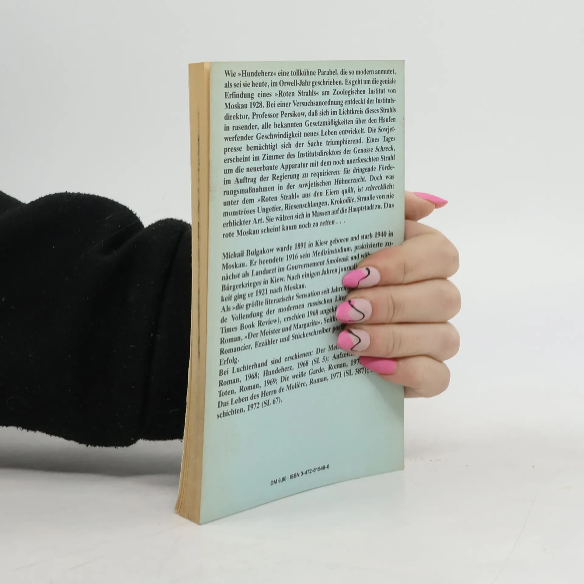 Moskau um 1928. Der renommierte Zoologe Professor Pfirsichow entdeckt zufällig einen "roten Strahl", der eine enorme wachstumsbeschleunigende Wirkung hat. Ein skrupel- wie ahnungsloser Funktionär entwendet die Gerätschaften des Wissenschaftlers und lässt Eier bestrahlen, um damit den Hunger auf Moskaus Straßen zu bekämpfen. Doch das Ergebnis ist mörderisch. Dieses fast vergessen Meisterwerk des jungen Michail Bulgakow ist eine beißende Satire mit bizarren Science-Fiction-Auswüchsen, die einmal mehr die Aktualität des russischen Jahrhundertautors zeigt. Alexander Nitzberg fängt auch in seiner dritten Bulgakow-Neuübersetzung wieder kongenial den Witz, die Galle und die Absurdität des teuflich satirischen Kurzromans ein. (Klappentext)