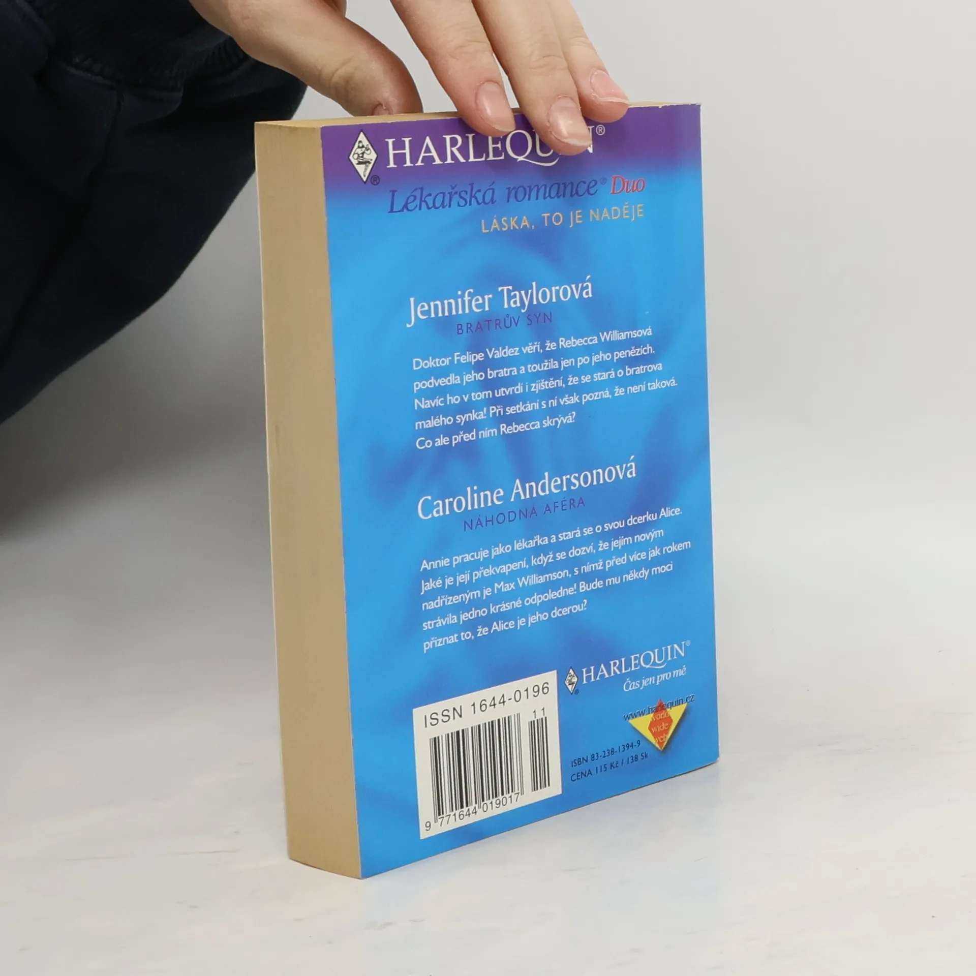 Jennifer Taylor-Bratrův syn Doktor Felipe Valdez věří, že Rebecca Williamsová podvedla jeho bratra a toužila jen po jeho penězích. Navíc ho v tom utvrdí i zjištění, že se stará o bratrova malého synka! Při setkání s ní však pozná, že není taková. Co ale před ním Rebecca skrývá? Caroline Anderson-Náhodná aféra Annie pracuje jako lékařka a stará se o svou dcerku Alice. Jaké je její překvapení, když se dozví, že jejím novým nadřízeným je Max Williamson, s nímž před více jak rokem strávila jedno krásné odpoledne! Bude mu někdy moci přiznat to, že Alice je jeho dcerou?