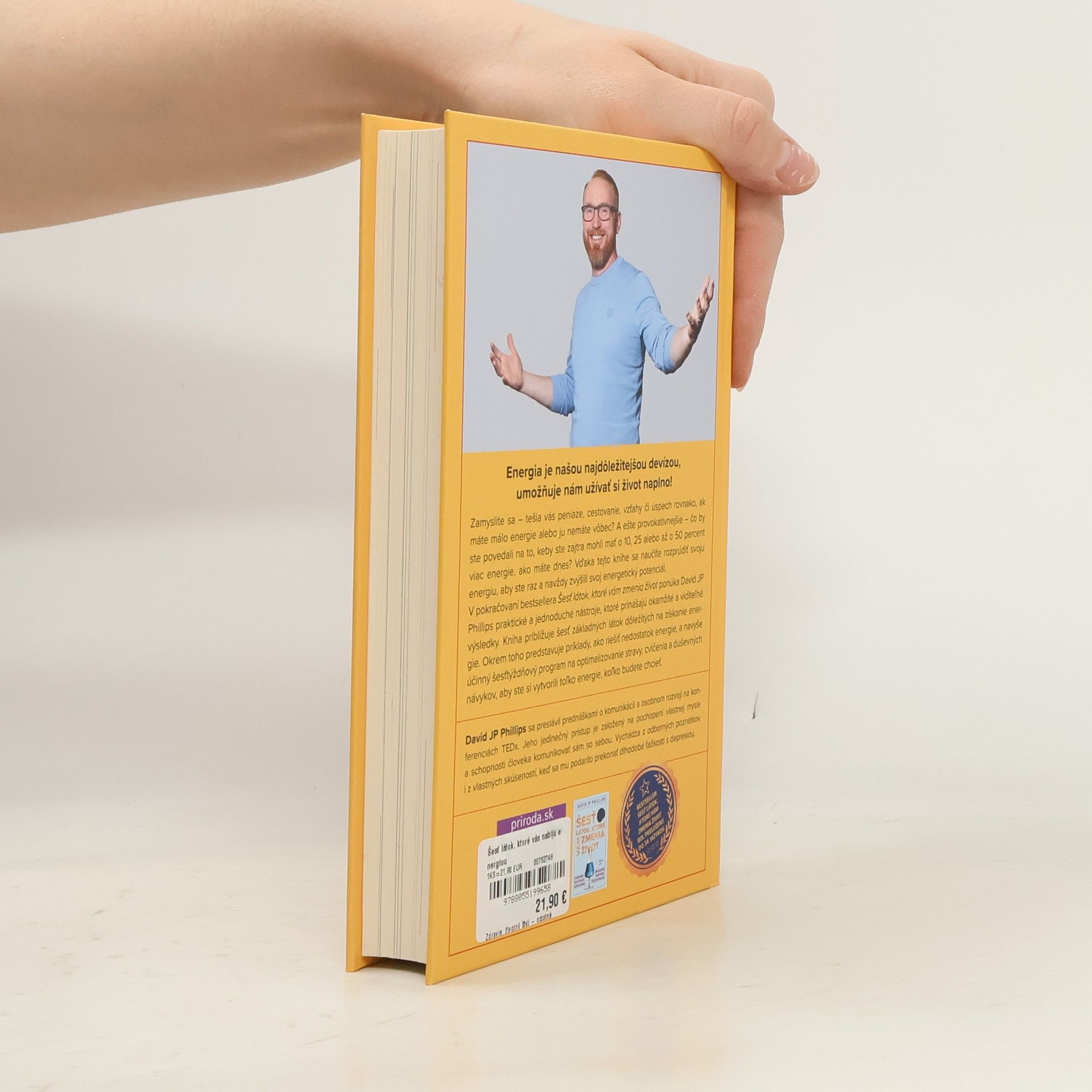 Chcete získať späť svoju nekonečnú energiu? Táto kniha vám ukáže, ako to dosiahnuť a užívať si život naplno.Zamyslite sa – tešia vás peniaze, cestovanie, vzťahy či úspech rovnako, ak máte málo energie alebo ju nemáte vôbec? Pritom už zajtra by ste mohli mať o 10, 25 alebo až o 50 percent viac energie ako dnes.V pokračovaní bestsellera Šesť látok, ktoré vám zmenia život ponúka David JP Phillips praktické a jednoduché nástroje, ktoré prinášajú okamžité a viditeľné výsledky. Kniha približuje šesť základných látok dôležitých na získanie energie. Okrem toho predstavuje príklady, ako riešiť nedostatok energie, a tiež účinný šesťtýždňový program na optimalizovanie stravy, cvičenia a duševných návykov, aby ste si vytvorili toľko energie, koľko budete chcieť.