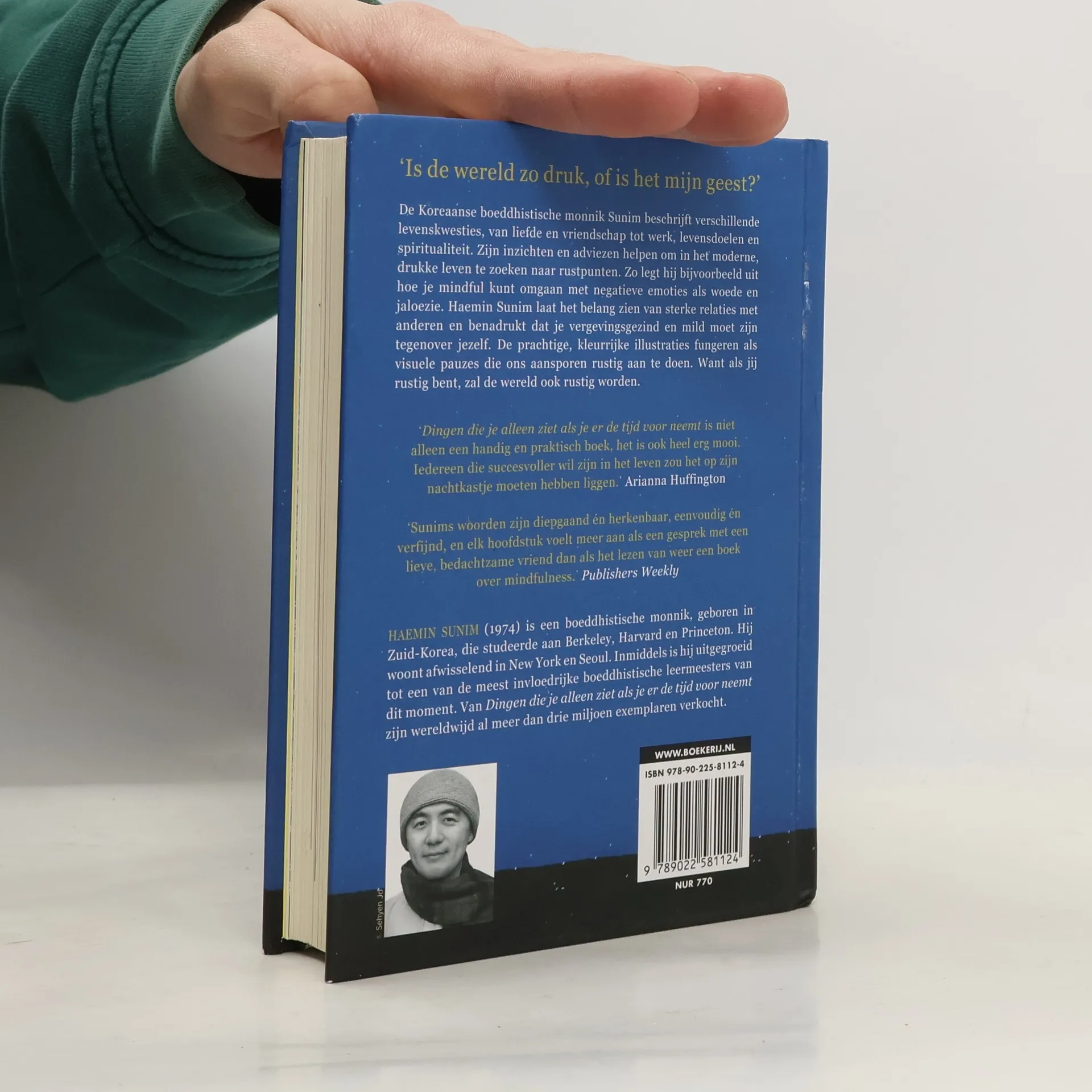 Koreaanse megabestseller over spirituele wijsheid en het belang om rust te vinden in een drukke wereld van een van de invloedrijkste boeddhistische leermeesters van dit moment Rust vinden in een drukke wereld De Koreaanse boeddhistische monnik Sunim geeft les over verschillende levenskwesties, van liefde en vriendschap tot werk, levensdoelen en spiritualiteit. Zijn inzichten en adviezen helpen om in het moderne, drukke leven te zoeken naar rustpunten. Zo legt hij bijvoorbeeld uit hoe je mindful kunt omgaan met negatieve emoties als woede en jaloezie. Haemin Sunim laat het belang zien van sterke relaties met anderen en benadrukt dat je vergevingsgezind en mild moet zijn tegenover jezelf. De prachtige, kleurrijke illustraties fungeren als kalmerende visuele pauzes die ons aansporen rustig aan te doen. Want als jij rustig bent, zal de wereld ook rustig worden.