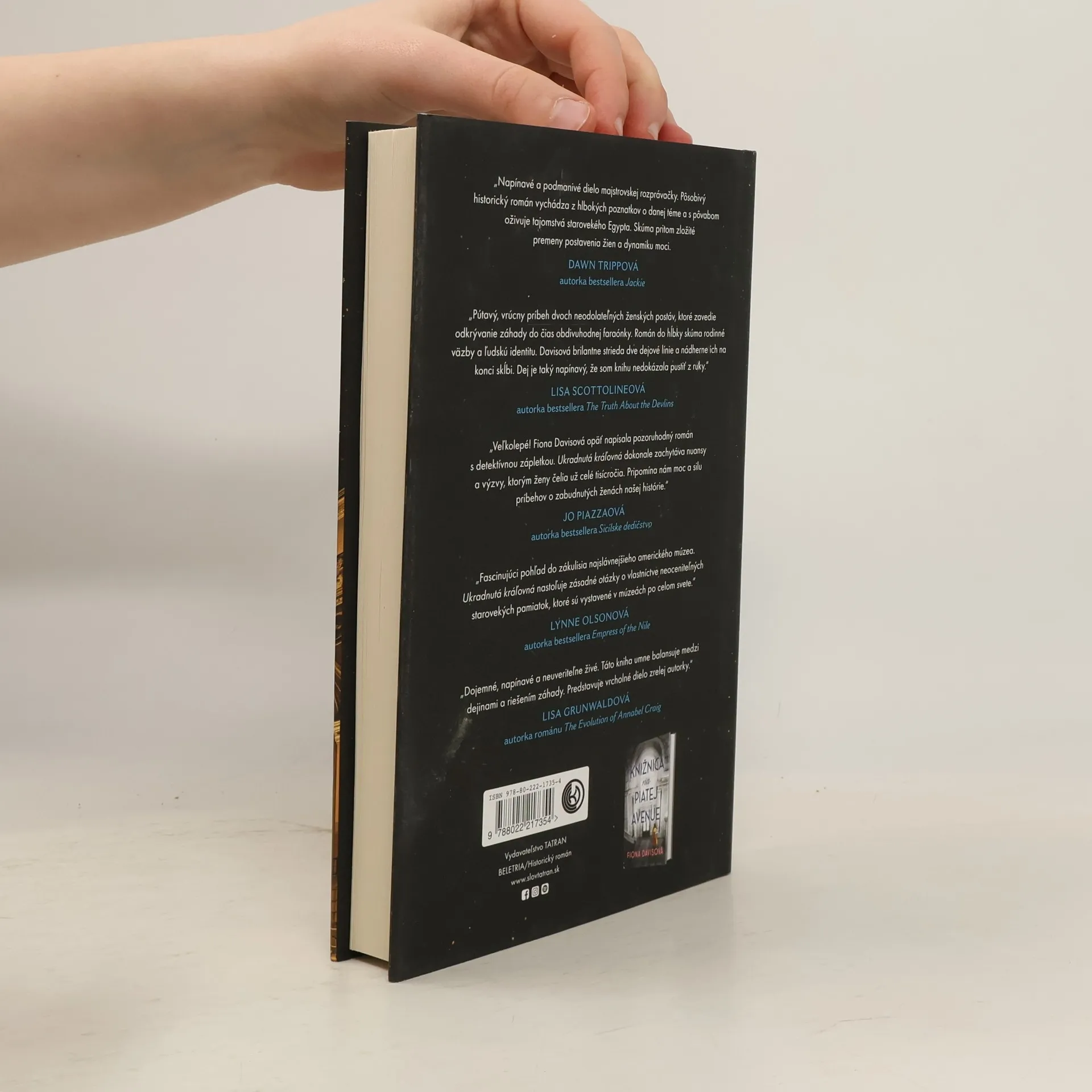Od autorky bestselleru Knižnica na Piatej avenue prichádza strhujúci román, ktorý vás prenesie z oslnivých večierkov newyorskej smotánky do tajomných uličiek Káhiry. Egypt, 1936: Charlotte Crossová, mladá študentka antropológie, dostane jedinečnú príležitosť zúčastniť sa archeologickýchvykopávok v Údolí kráľov. Sen sa však zmení na nočnú moru, keď tragická udalosť navždy poznačí jej život. New York, 1978: Devätnásťročná Annie Jenkinsová je nadšená, keď získa prácu asistentky Diany Vreelandovej, legendárnej redaktorky Vogue, pri organizovaní prestížneho Met Gala. Charlotte, teraz uznávaná kurátorka egyptského umenia v Metropolitnom múzeu, sa venuje výskumu zabudnutej faraónky Hathórkare. Počas Met Gala však dôjde k záhadnej krádeži vzácneho artefaktu a zdá sa, že prastará kliatba bola prebudená. Annie a Charlotte spoja sily, aby artefakt našli. Pátranie ich zavedie do Egypta, na miesto, kam sa Charlotte už nikdy nechcela vrátiť. Aby odhalili pravdu, musia čeliť nielen temným tajomstvám minulosti, ale aj smrteľnému nebezpečenstvu, ktoré na ne číha v púšti