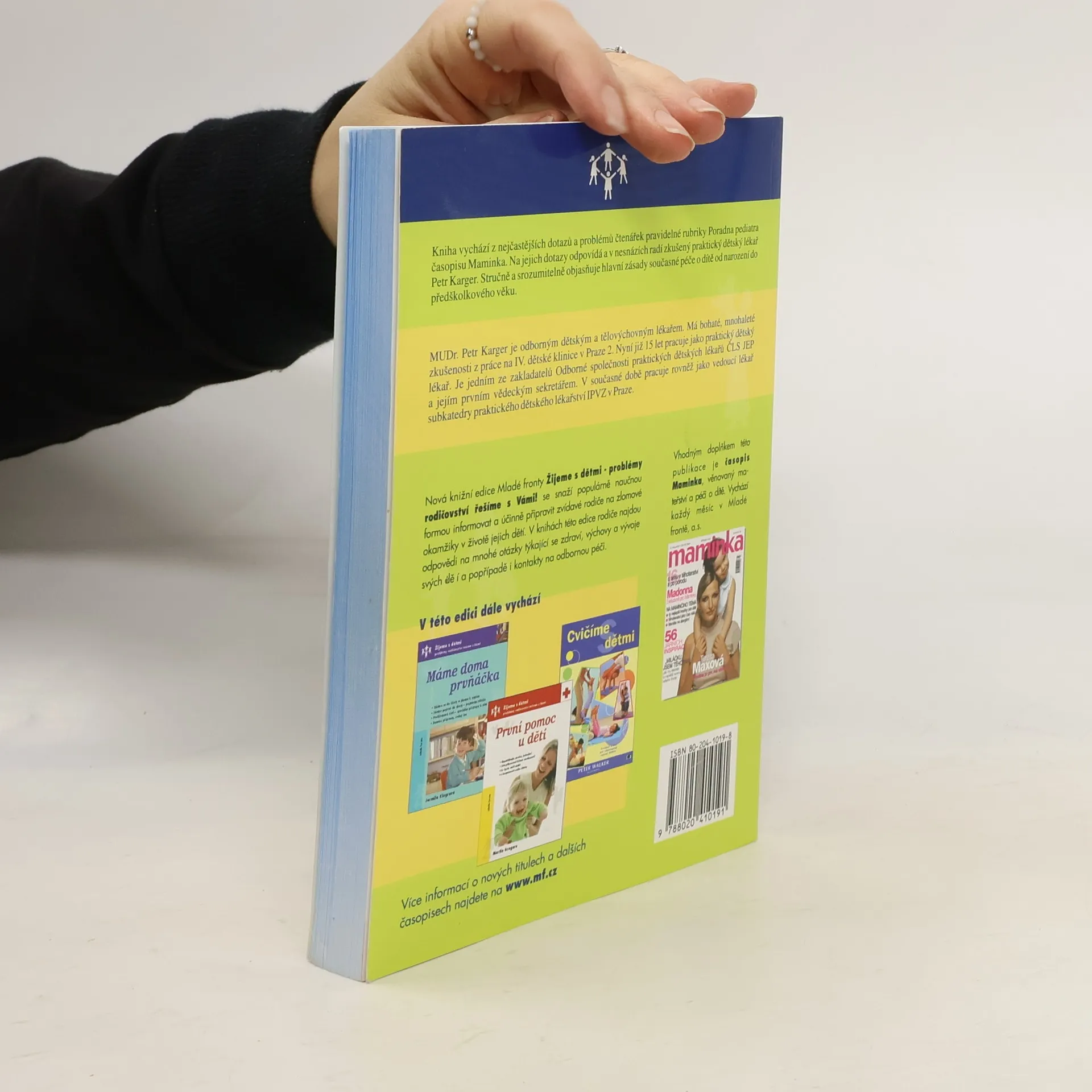 Kniha vychází z nejčastějších dotazů a problémů čtenářek pravidelné rubriky Poradna pediatra časopisu Maminka. Na jejich dotazy odpovídá a v nesnázích radí zkušený praktický dětský lékař Petr Karger. Stručně a srozumitelně objasňuje hlavní zásady současné péče o dítě od narození do předškolkového věku. Nová knižní edice Mladé fronty Žijeme s dětmi – problémy rodičovství řešíme s Vámi! se snaží populární naučnou formou informovat a účinně připravit zvídavé rodiče na zlomové okamžiky v životě jejich dětí. V knihách této edice rodiče najdou odpovědi na mnohé otázky týkající se zdraví, výchovy a vývoje svých dětí a popřípadě i kontakty na odbornou péči. V této knize se dočtete mimo jiné o tom, jak hledat dobrého pediatra, o prvních týdnech vašeho děťátka, o častých nemocích – jak jim předcházet a léčit je – a očkovací kalendář.