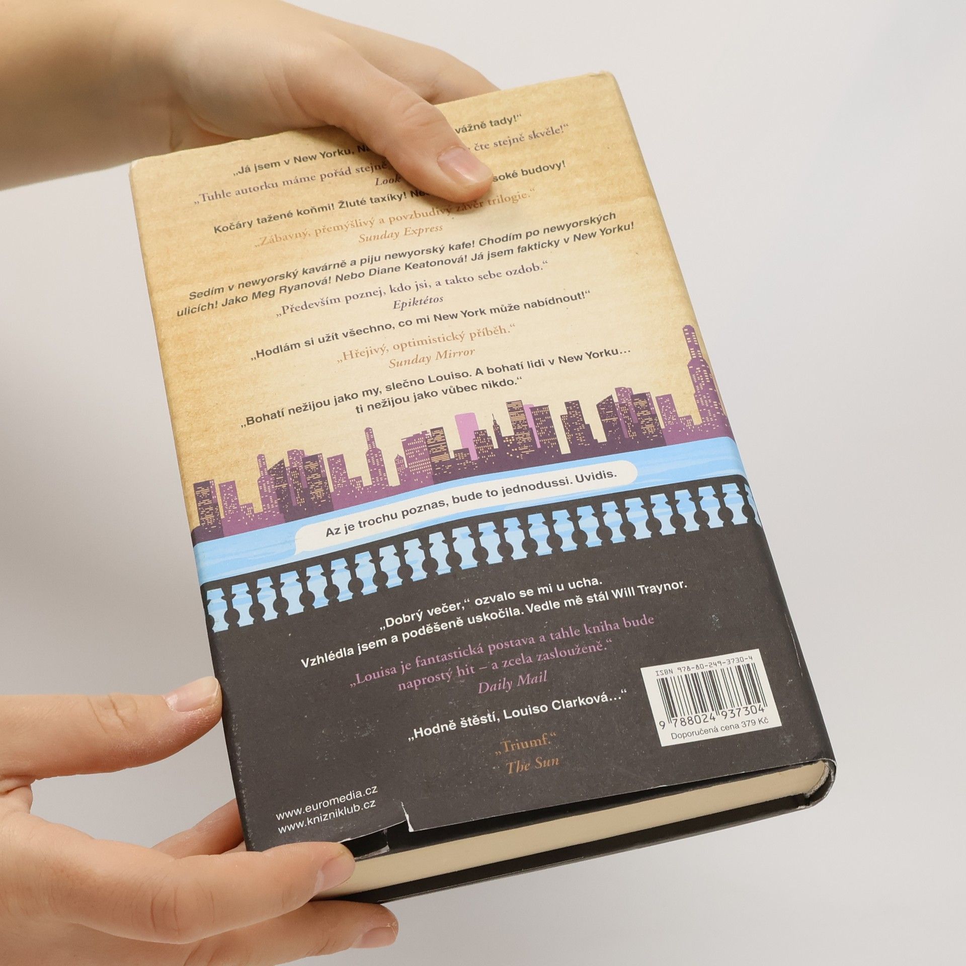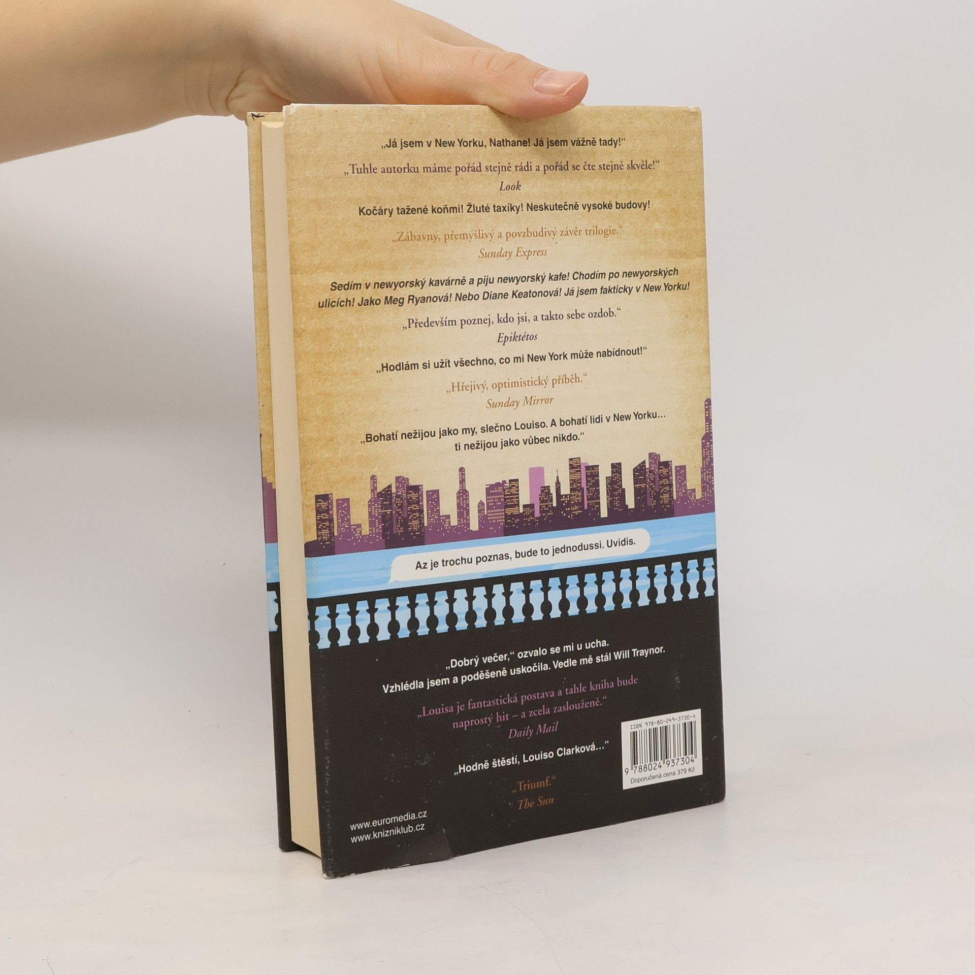 Louisa Clarková z bestellerů Než jsem tě poznala a Život po tobě se vrací v novém románu Jojo Moyesové! A hodně toho ví… Tak například ví, jak daleko je z jejího nového domova v New Yorku do Londýna, kde žije její přítel Sam. Ví také, že její nový zaměstnavatel je dobrý člověk a že před ním jeho manželka skrývá tajemství. Co ovšem Louisa ještě netuší, je to, že nová práce v novém městě jí rozhodně nezaručí idylický život, ve který tolik doufala, a že bude její vztah se Samem z obou stran podroben zkoušce ohněm. A neví také, že lidé, s nimiž se ve své nové životní etapě setká, ji možná postrčí dost nečekaným směrem…