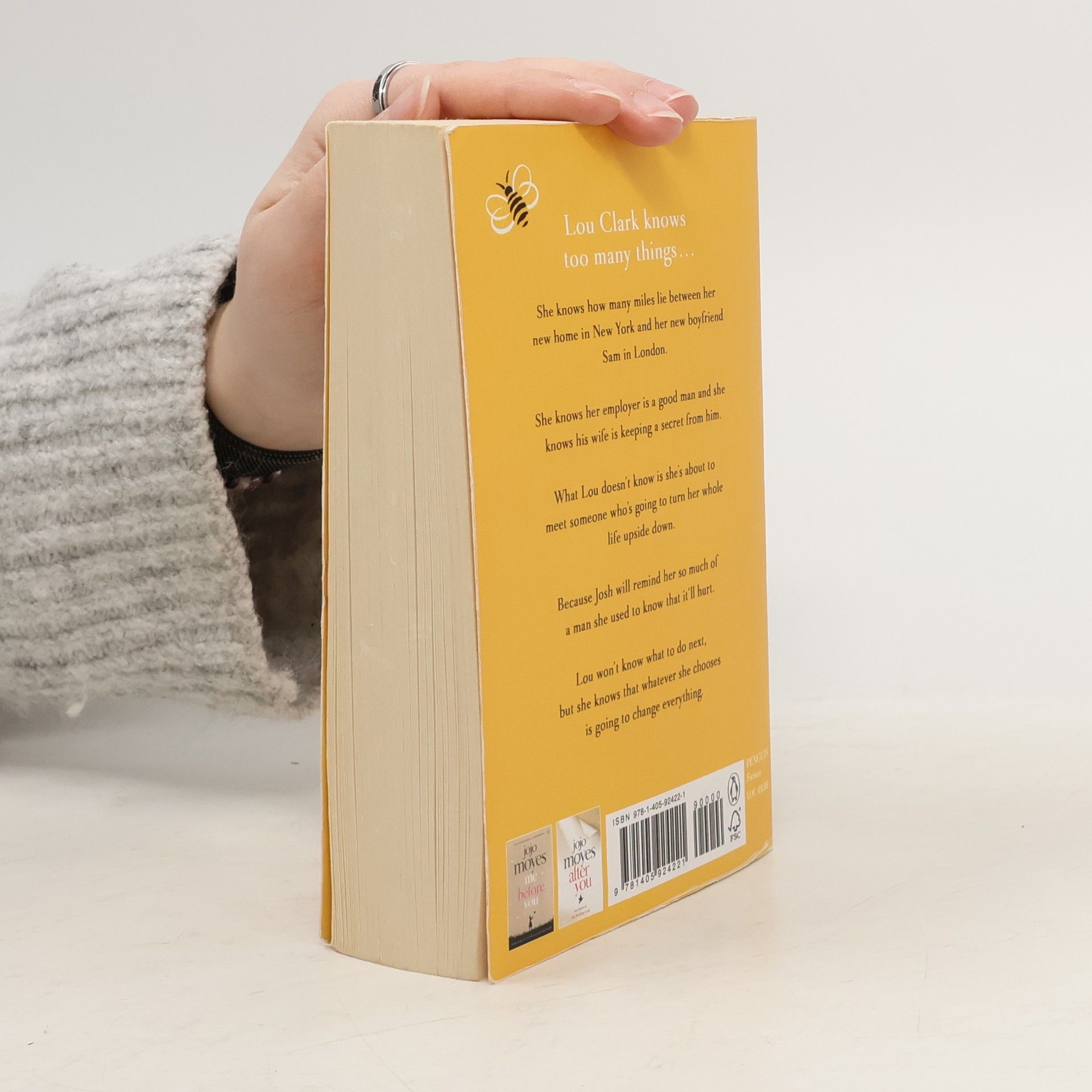Lou Clark knows too many things . . . She knows how many miles lie between her new home in New York and her new boyfriend Sam in London. She knows her employer is a good man and she knows his wife is keeping a secret from him. What Lou doesn't know is she's about to meet someone who's going to turn her whole life upside down. Because Josh will remind her so much of a man she used to know that it'll hurt. Lou won't know what to do next, but she knows that whatever she chooses is going to change everything.