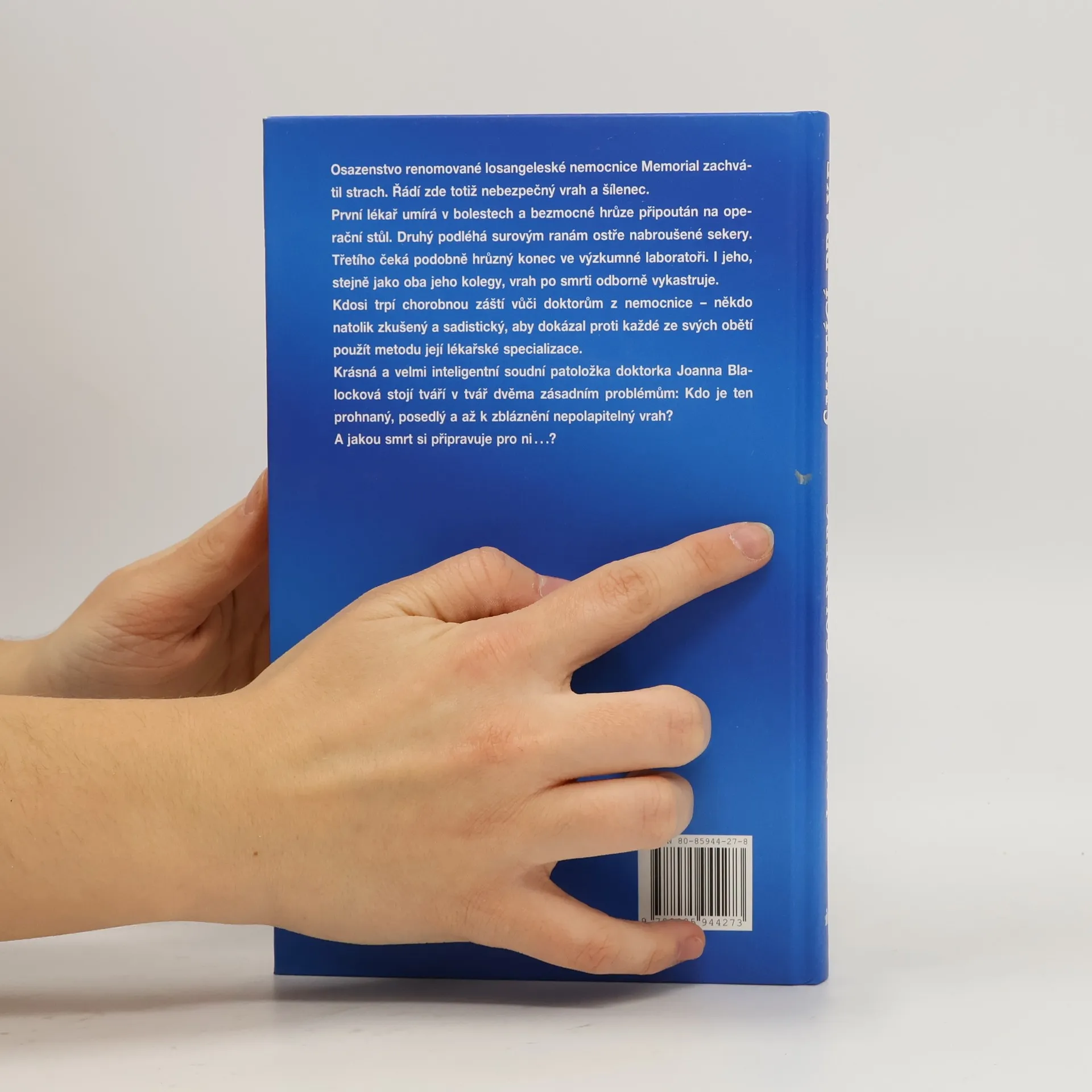Osazenstvo renomované losangeleské nemocnice Memorial zachvátil strach. Řádí zde totiž nebezpečný vrah a šílenec. První lékař umírá v bolestech a bezmocné hrůze připoután na operační stůl. Druhý podléhá surovým ranám ostře nabroušené sekery. Třetího čeká podobně hrůzný konec ve výzkumné laboratoři. I jeho, stejně jako oba předchozí, vrah po smrti odborně vykastruje. Kdosi trpí chorobnou záští vůči doktorům z nemocnice - někdo natolik zkušený a sadistický, aby dokázal proti každé ze svých obětí použít metod její lékařské specializace. Soudní patoložka Joanna Blalocková stojí tentokrát tváří v tvář dvěma zásadním problémům: Kdo je ten prohnaný, posedlý a až k zbláznění nepolapitelný vrah? A jakou smrt si připravuje pro ni...?