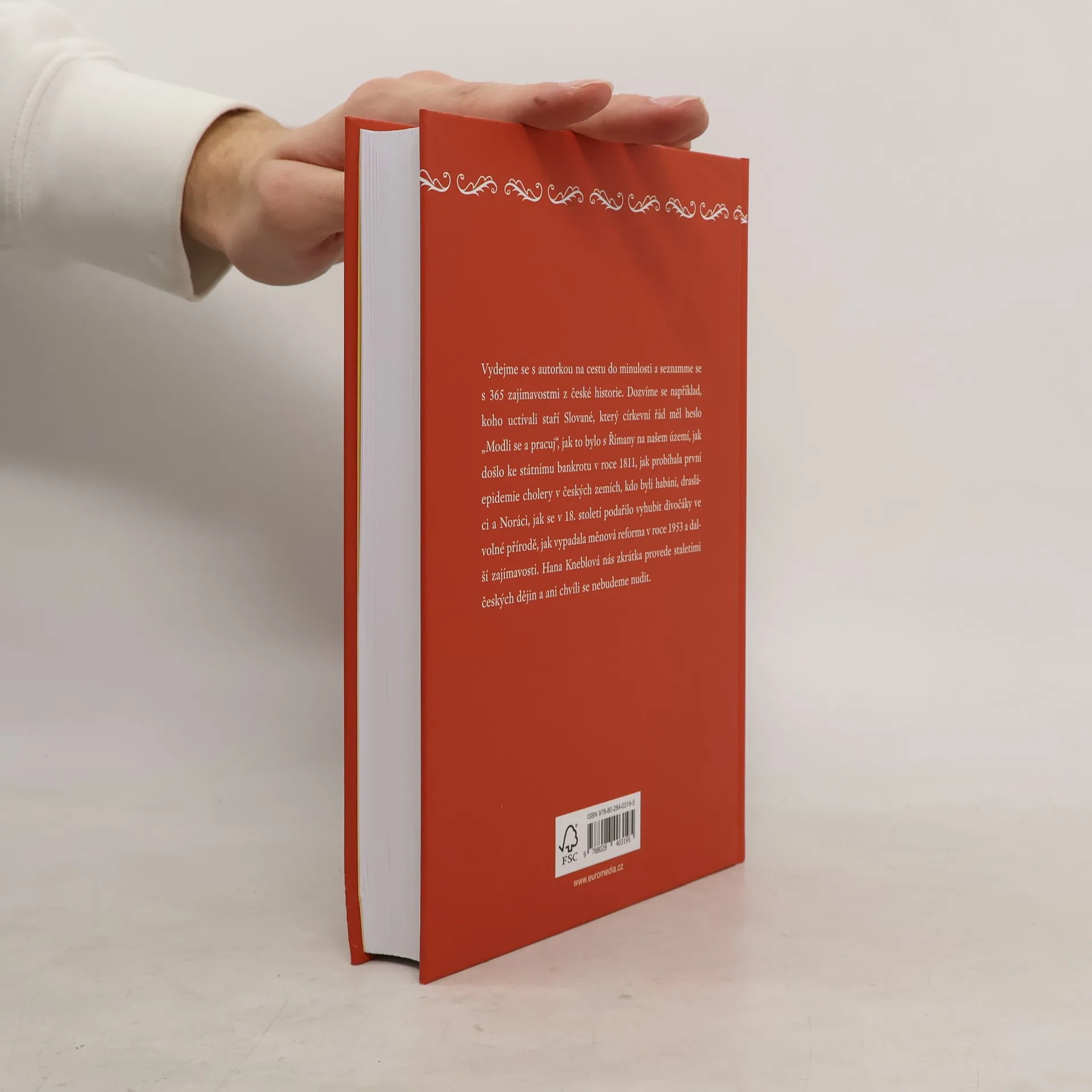 Vydejme se s autorkou na cestu do minulosti a seznamme se s 365 zajímavostmi z české historie. Dozvíme se například, koho uctívali staří Slované, který církevní řád měl heslo „Modli se a pracuj“, jak to bylo s Římany na našem území, jak došlo ke státnímu bankrotu v roce 1811, jak probíhala první epidemie cholery v českých zemích, kdo byli habáni, drasláci a Noráci, jak se v 18. století podařilo vyhubit divočáky ve volné přírodě, jak vypadala měnová reforma v roce 1953 a další zajímavosti. Hana Kneblová nás zkrátka provede staletími českých dějin a ani chvíli se nebudeme nudit.