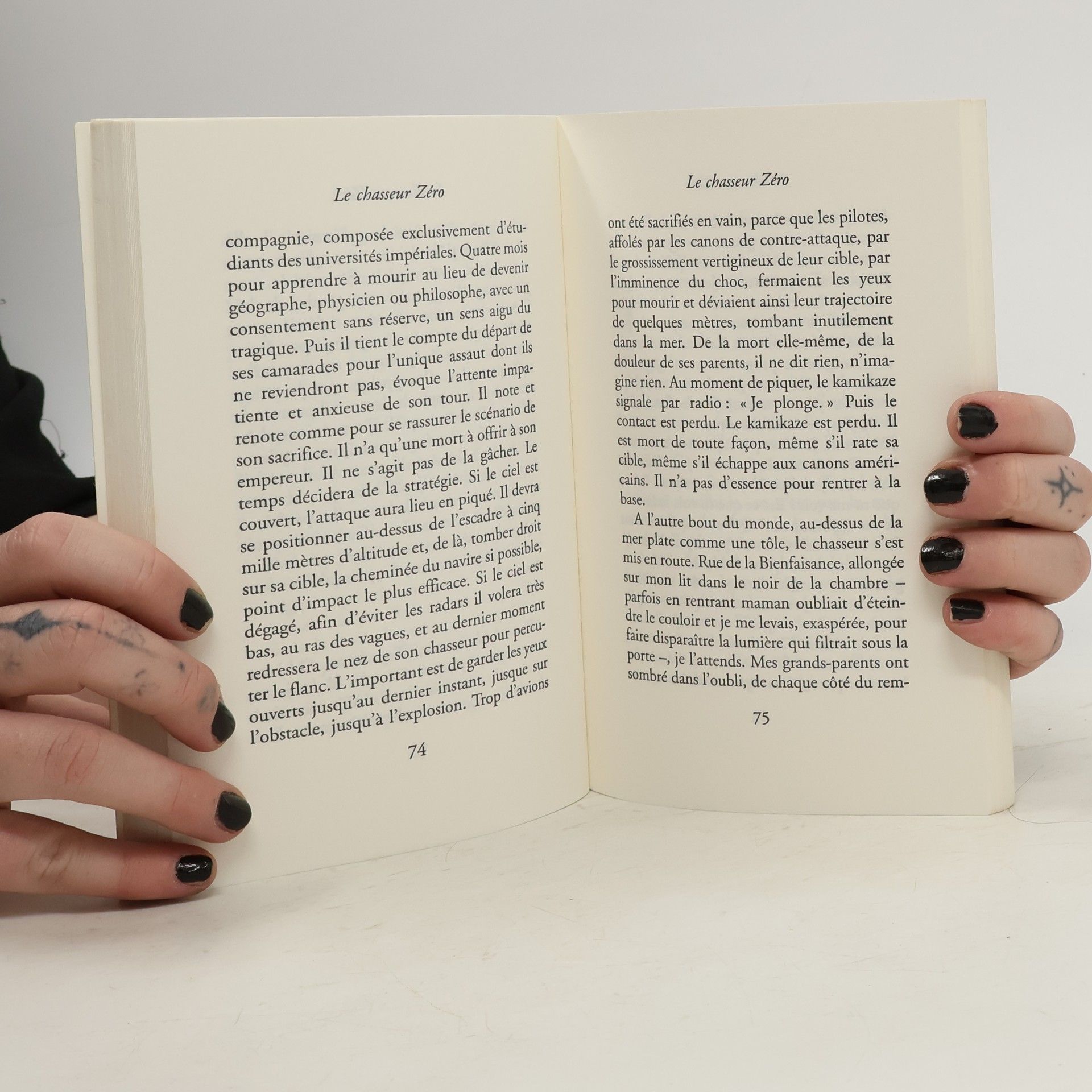 C'est l'histoire d'une obsession qui tourne à l'hallucination auditive. Laura Carlson grandit dans un véritable huis clos étouffant entre une mère folle, une grand-mère despotique et un grand-père distant. Sur la famille pèse un lourd secret, celui de la mort du père en 1945. Laura finit par apprendre qu'il a été tué à Okinawa lorsque son bateau, le Maryland, a été coulé par un avion japonais. Laura pourrait être délivrée d'avoir découvert cette vérité ; au contraire, elle est hantée par le "chasseur zéro" le kamikaze aux commandes de son avion meurtrier, dont elle entend en permanence le grondement dans ses oreilles au point qu'elle ne peut vivre sans boules Quiès. Sa liaison avec un jeune compositeur fasciné lui aussi par la Seconde Guerre mondiale ne fera qu'alimenter ses angoisses. Pascale Roze, née au Vietnam où son père était officier de marine, s'est mise à écrire après avoir lu Marguerite Duras. Loin des intrigues psychologiques classiques, elle bâtit comme une composition musicale à l'atmosphère étrange et inquiétante ce premier roman qui lui a valu d'emblée le prix Goncourt en 1996. --Gérard Meudal