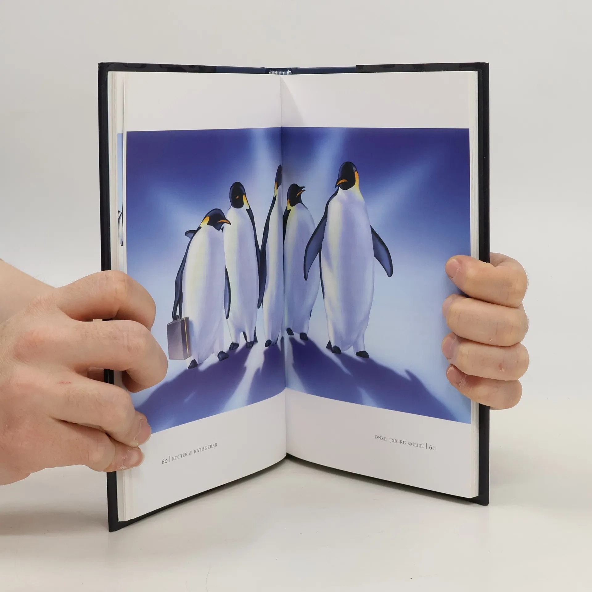 Beschouwing over organisatieverandering in de vorm van een fabel over pinguïns die een oplossing moeten bedenken als hun ijsberg smelt.