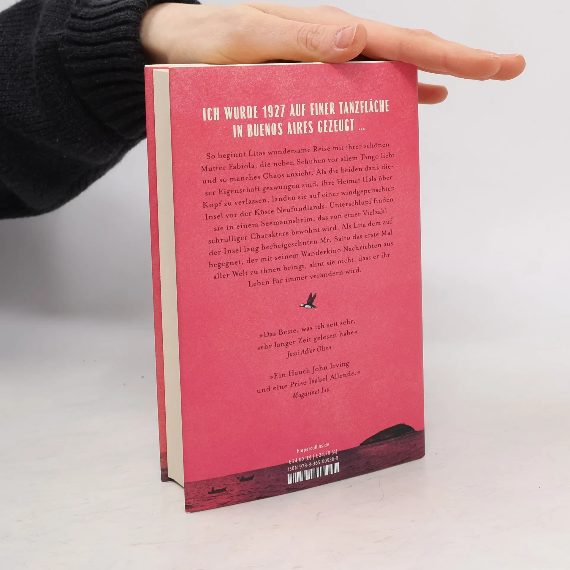 Ich wurde 1927 auf einer Tanzfläche in Buenos Aires gezeugt … So beginnt Litas wundersame Reise mit ihrer schönen Mutter Fabiola, die neben Schuhen vor allem Tango liebt und so manches Chaos anzieht. Als die beiden dank dieser Eigenschaft gezwungen sind, ihre Heimat Hals über Kopf zu verlassen, landen sie unplanmäßig auf einer windgepeitschten Insel vor der Küste Neufundlands. Unterschlupf finden sie in einem Seemannsheim, das von einer Vielzahl schrulliger Charaktere bewohnt wird. Lita freundet sich schnell mit der gehörlosen Tochter der Gastgeber an, der einzigartigen Oona McGregor. Als sie den auf der Insel lang herbeigesehnten Mr. Saito das erste Mal begegnet, der mit seinem Wanderkino Nachrichten aus aller Welt zu ihnen bringt, ahnt Lita nicht, dass er ihr Leben für immer verändern wird. »Mr. Saitos reisendes Kino« ist eine unvergleichliche Odyssee über das Finden von Familie an unerwarteten Orten, einen Fischerjungen mit bernsteinfarbenen Augen, Herzklopfen, entlaufene Tangoschuhe und die Liebe in all ihren Formen. »Das Beste, was ich seit sehr, sehr langer Zeit gelesen habe« Jussi Adler Olsen