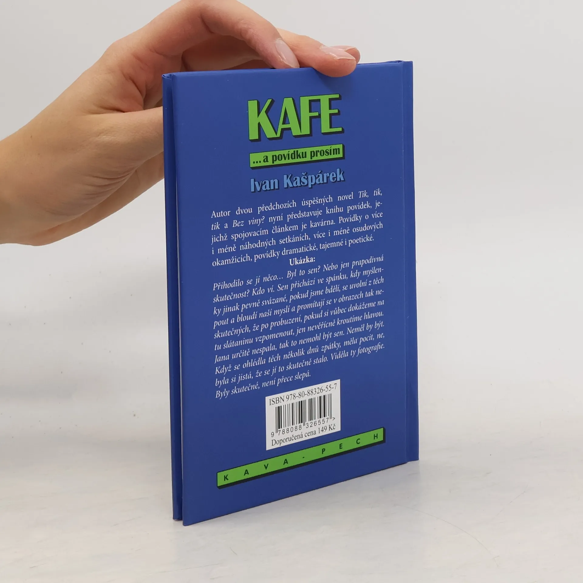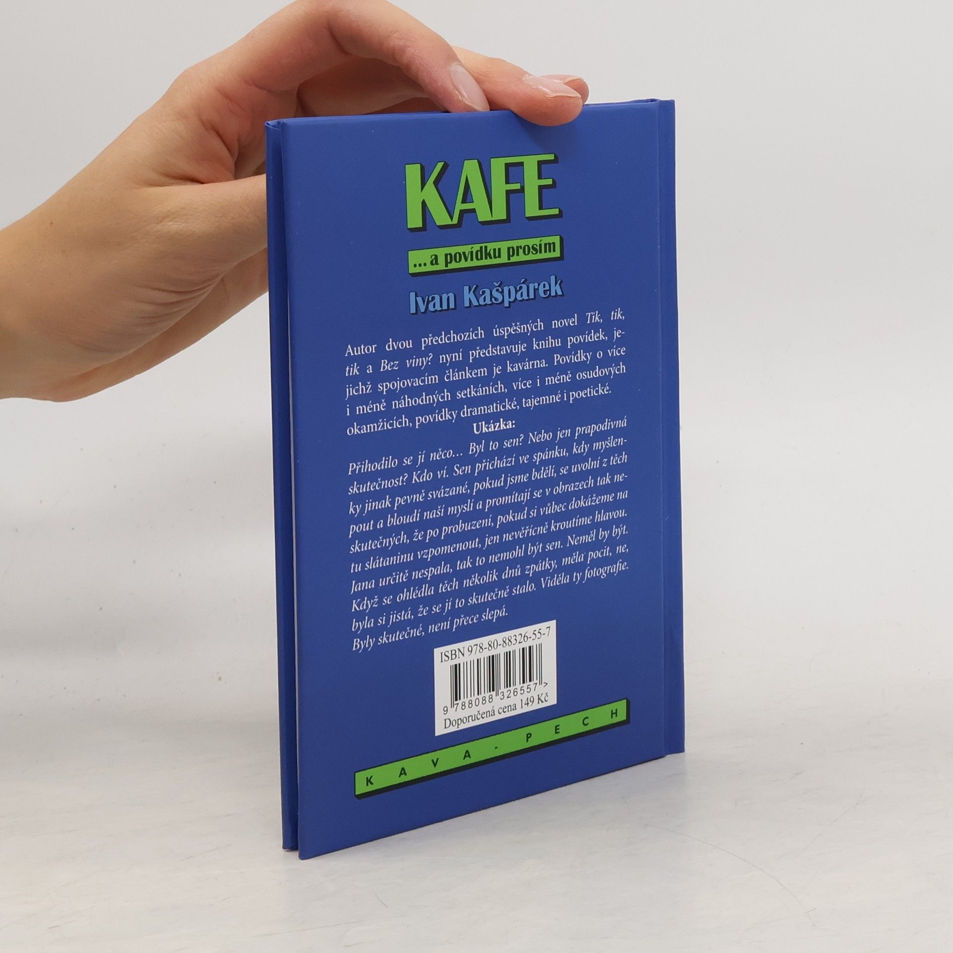 Autorpředstavuje knihu povídek, jejichž spojovacím článkem je kavárna. Povídky o více i méně náhodných setkáních, více i méně osudových okamžicích, povídky dramatické, tajemné i poetické.