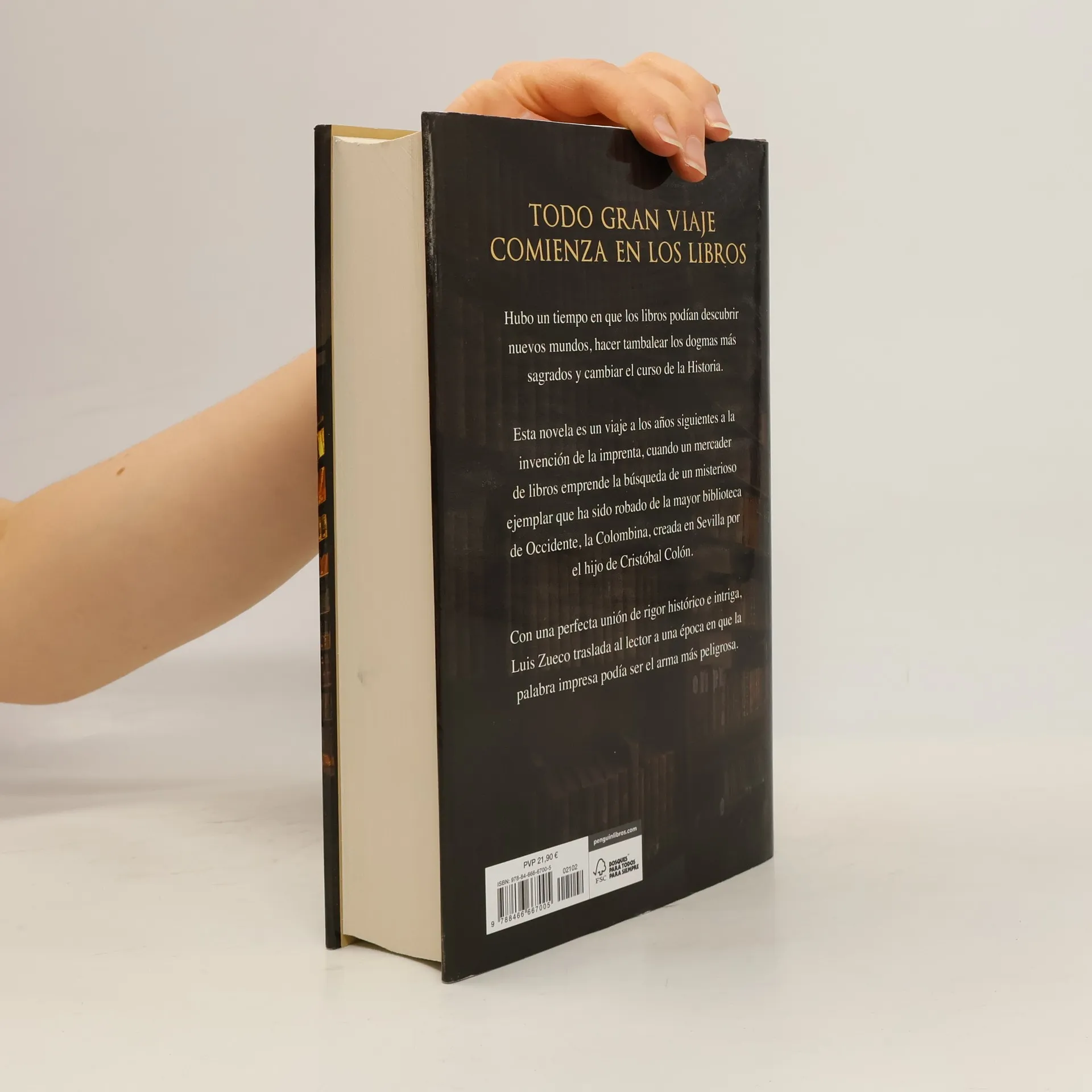 Con una perfecta unión de rigor histórico e intriga, Luis Zueco traslada al lector a una época en que la palabra impresa podía ser el arma más peligrosa. Hubo un tiempo en que los libros podían descubrir nuevos mundos, tambalear los dogmas más sagrados y cambiar el curso de la Historia. Esta novela es un viaje a los años siguientes a la invención de la imprenta, cuando un mercader de libros emprende la búsqueda de un misterioso ejemplar que ha sido robado de la mayor biblioteca de Occidente, creada en Sevilla por el hijo de Cristóbal Colón. Año 1517. El joven Thomas atraviesa la incipiente Europa renacentista huyendo de su pasado. Son los años siguientes al descubrimiento de América y la invención de la imprenta, un periodo de profundos cambios que han supuesto el fin de la Edad Media. La curiosidad que siente por el Nuevo Mundo, cosechada en sus múltiples lecturas, le llevará hasta España, donde comenzará a trabajar con un mercader de libros. El encargo de localizar un ejemplar envuelto en un halo misterioso le conduce hasta Sevilla, una próspera ciudad que sirve como enlace en el comercio con las Indias y que alberga, entre sus murallas, la biblioteca más importante de Occidente, creada por el hijo de Cristóbal Colón y llamada la Colombina. Será precisamente allí donde Thomas descubra que alguien ha robado el libro que él busca y, por alguna razón, tiene mucho interés en que nadie lo encuentre. Hubo un tiempo en que los libros permitían descubrir nuevos mundos, tambalear los dogmas más sagrados y cambiar el curso de la Historia. Luis Zueco nos sumerge en los albores de la bibliofilia y nos traslada, en una perfecta unión de rigor histórico y trama trepidante, a una época en la que la palabra impresa podía ser el arma más peligrosa.