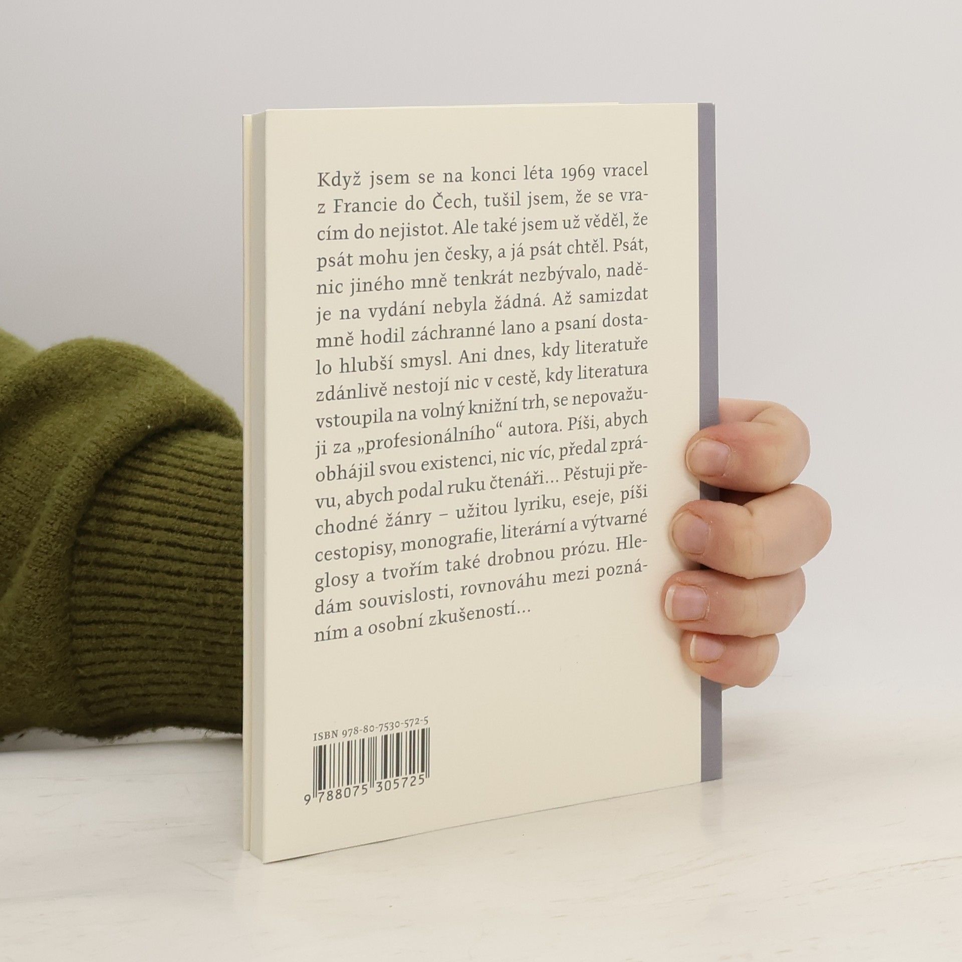 Když jsem se na konci léta v roce 1969 vracel z Francie do Čech, tušil jsem, že se vracím do nejistot. Ale také jsem už věděl, že psát mohu jen česky a já psát chtěl. Psát, nic jiného mně tenkrát nezbývalo, naděje na vydání nebyla žádná. Až samizdat mně hodil záchranné lano a psaní dostalo hlubší smysl. Ani dnes, kdy literatuře zdánlivě nestojí nic v cestě, kdy literatura vstoupila na volný knižní trh, se nepovažuji za „profesionálního“ autora. Píši, abych obhájil svou existenci, nic víc, předal zprávu, abych podal ruku čtenáři… Pěstuji přechodné žánry – užitou lyriku, eseje, píši cestopisy, monografie, literární a výtvarné glosy a tvořím také drobnou prózu. Hledám souvislosti, rovnováhu mezi poznáním a osobní zkušeností…