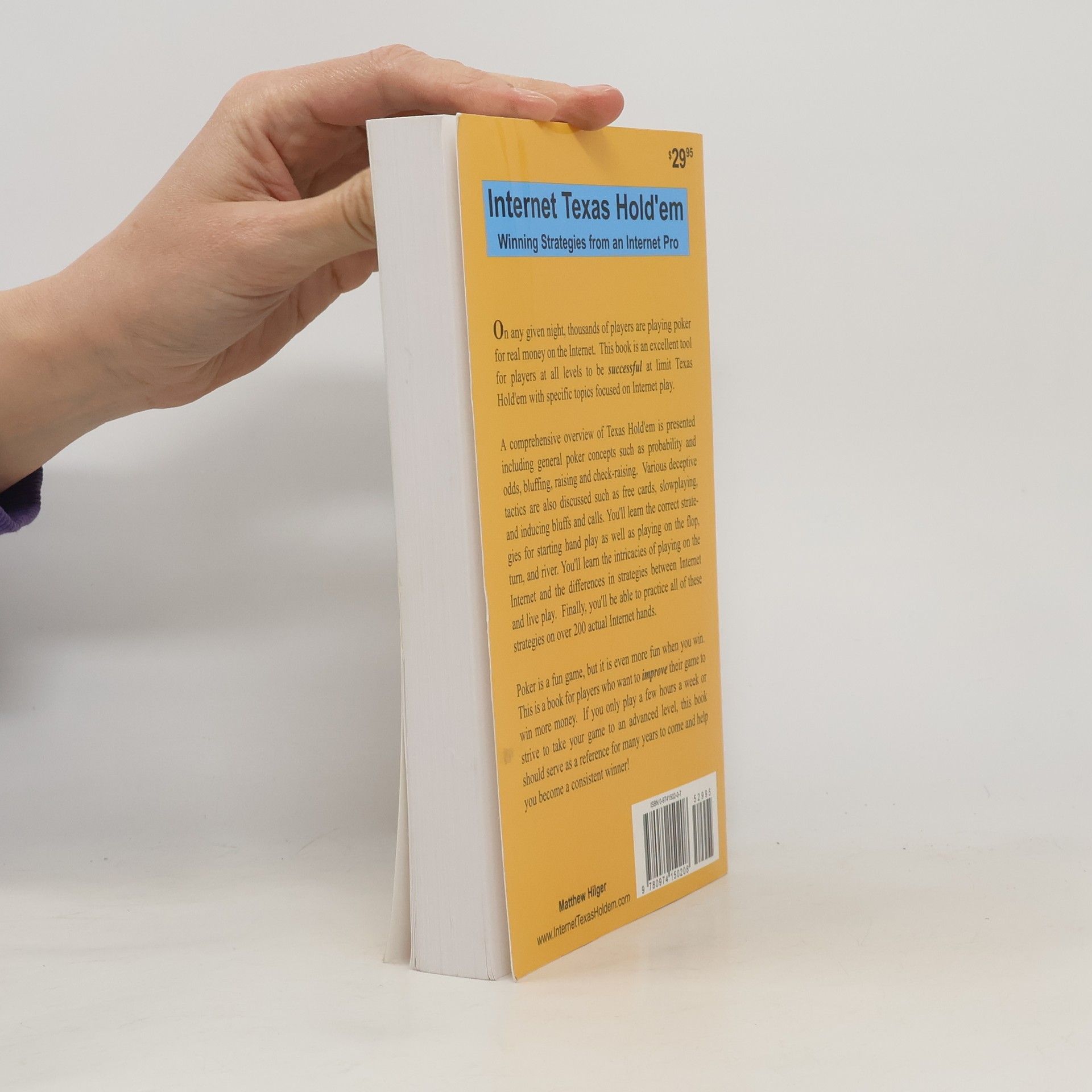As Internet poker exploded, thousands of players turned to Internet Texas Hold'em to help them become winning players. Today, Internet Texas Hold'em is now the most successfull book ever on Internet poker. Internet Texas Hold'em is an excellent tool for beginning to intermediate players to be successful at limit Texas Hold'em with specific topics focused on Internet play. The book's reputation has superceded its title as many players now recommend it for live play also. A comprehensive overview of Texas Hold'em is presented including general poker concepts such as probability and odds, bluffing, raising and check-raising. Various deceptive tactics are also discussed such as free cards, slowplaying, and inducing bluffs and calls. You'll learn the correct strategies for starting hand play as well as playing on the flop, turn, and river. You'll learn the intricacies of playing on the Internet and the differences in strategies between Internet and live play. Finally, you'll be able to practice all of these strategies on over 200 actual Internet hands. Poker is a fun game, but it is even more fun when you win. This is a book for players who want to improve their game to win more money. If you only play a few hours a week or strive to take your game to an advanced level, this book should serve as a reference for many years to come.
