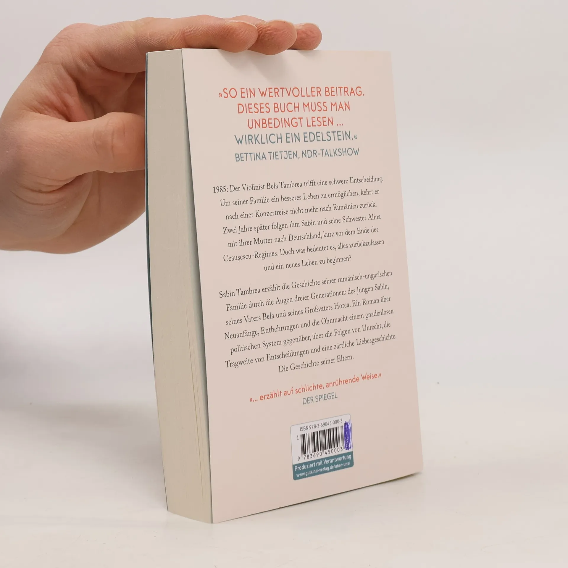 Der große, warme Roman von Bestseller-Autor Sabin Tambrea erzählt die bewegende Lebensgeschichte seiner rumänisch-ungarischen Familie. Durch die Augen dreier Generationen – des jungen Sabin, seines Vaters Béla und seines Großvaters Horea – erleben wir eine emotionale Zeit voller Entbehrungen, Hoffnungen und Entscheidungen, die das Schicksal der Familie prägen. 1985 trifft Béla die schwere Entscheidung, Rumänien nach einer Konzertreise zu verlassen, um seiner Familie ein besseres Leben zu ermöglichen. Dieser mutige Schritt führt dazu, dass seine Familie zwei Jahre später nach Deutschland zieht, kurz bevor das Ceaușescu-Regime blutig zusammenbricht. Der Neuanfang in einem fremden Land bringt Freiheit, aber auch große Entbehrungen und Einsamkeit mit sich. Tambrea entfaltet die Auswirkungen eines gnadenlosen politischen Systems auf das Leben gewöhnlicher Menschen und beschreibt die Ohnmacht gegenüber Unrecht sowie die Tragweite von Entscheidungen. Gleichzeitig erzählt er von einer Liebesgeschichte, die den Zusammenhalt der Familie in dunkelsten Zeiten zeigt. Mit großer sprachlicher Kraft nimmt er uns mit auf eine Reise durch die turbulenten Ereignisse des 20. Jahrhunderts und bietet ein eindrucksvolles Zeugnis menschlicher Stärke und Überlebenswillens in einer sich wandelnden Welt.