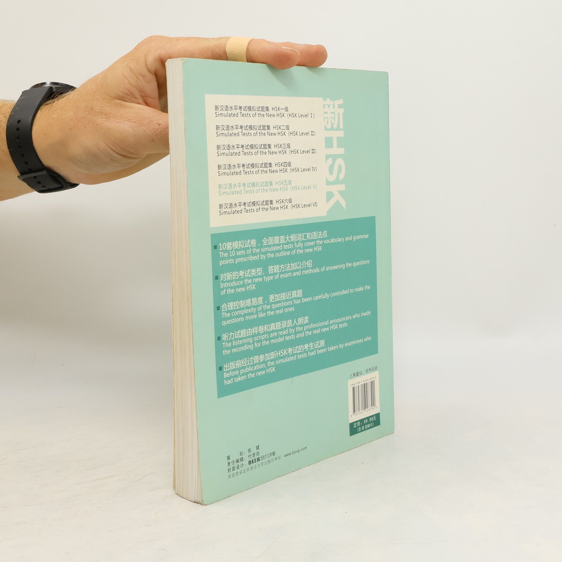 New Chinese Proficiency Test HSK Stimulated Tests altogether have six levels. It is a collection of simulated tests written by experienced TCSL teachers according to the general requirements of New Chinese Proficiency Test HSK (Chinese Proficiency Test) newly enacted by Hanban. All the stimulated tests have been used in preparation classes and proved to help examinees improve their examination skills and Chinese in a short time. There are 10 simulated tests within each volume, covering vocabulary and examination points at all levels. Introductions in both English and Chinese on the New HSK and the examination points have been made within this book. Enclosed is the recording MP3 of the listening exercises. This book is divided into 5 levels, with a starting vocabulary of 2500 words.《新汉语水平考试模拟试题集》分六级,以国家汉办颁布的《新汉语水平考试大纲》各级的词汇和语法项目为纲,模拟其样卷的出题类型和难度,由富有HSK教学辅导经验的对外汉语教师精心编写,并经过辅导班试测,可迅速提高应试能力和汉语水平。每级分册包含10套模拟试卷,基本覆盖了大纲中的词汇和语法点,并对新汉语水平考试和答题要点做了中英文介绍。随书附有模拟考试听力部分的录音MP3。 本书为五级,考生词汇量起点为2500词。