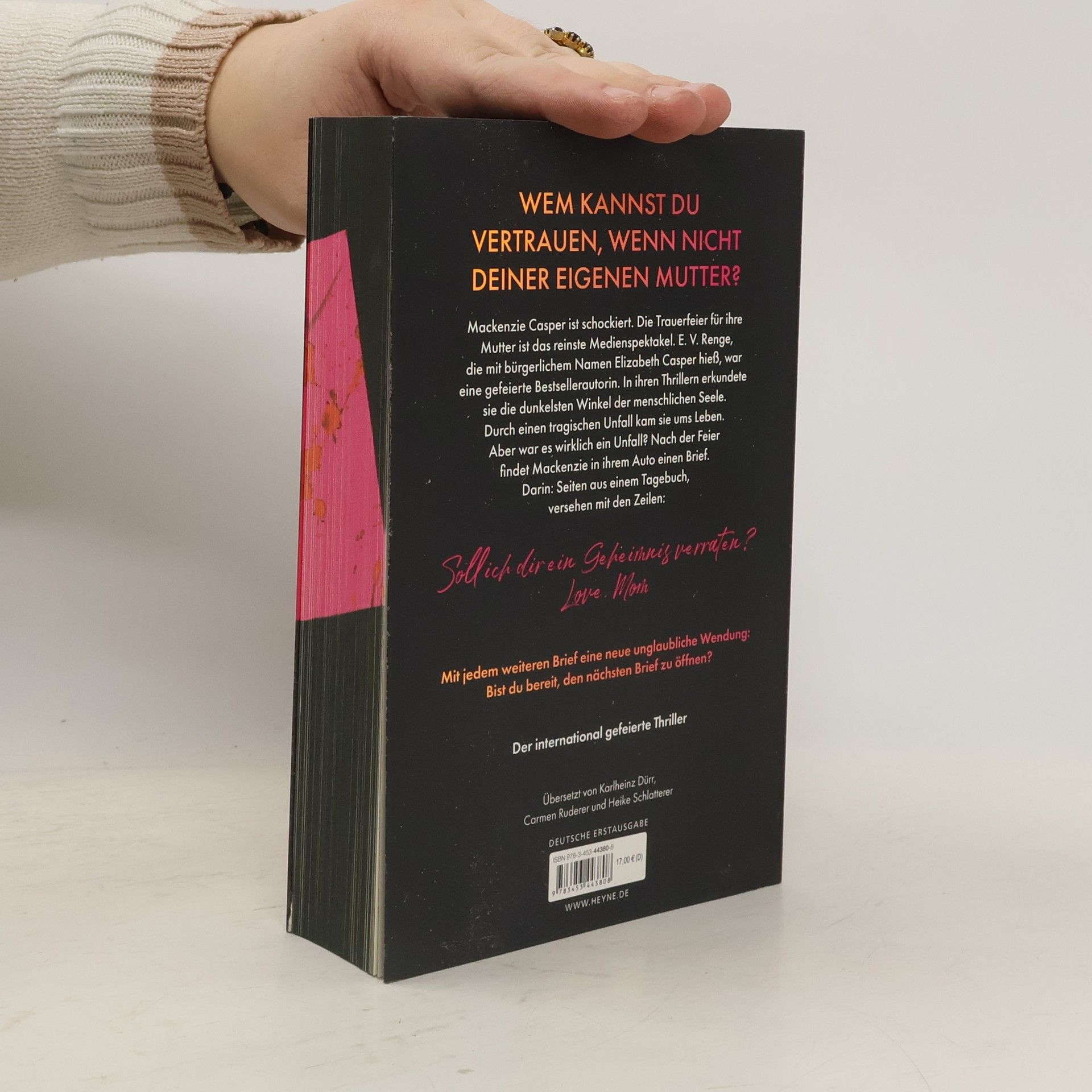 Wem kannst du vertrauen, wenn nicht deiner eigenen Mutter? Mit Farbschnitt in limitierter Erstauflage – Lieferung je nach Verfügbarkeit Studentin Mackenzie Casper hat stets im Schatten ihrer berühmten Mutter Elizabeth gelebt, einer der bekanntesten Thriller-Autorinnen der Welt. Doch jetzt ist Elizabeth tot. Mackenzie ist nicht die Einzige die Zweifel daran hat, dass es ein tragischer Unfall war. Auf der Trauerfeier erhält sie einen mysteriösen Brief mit Seiten aus dem Tagebuch ihrer Mutter. Weitere Briefe folgen. Hatte ihre Mom Geheimnisse, die sie das Leben kosteten? Um das herauszufinden, muss Mackenzie selbst Nachforschungen anstellen. Dabei darf sie niemandem trauen. Vor allem nicht ihrer Familie.