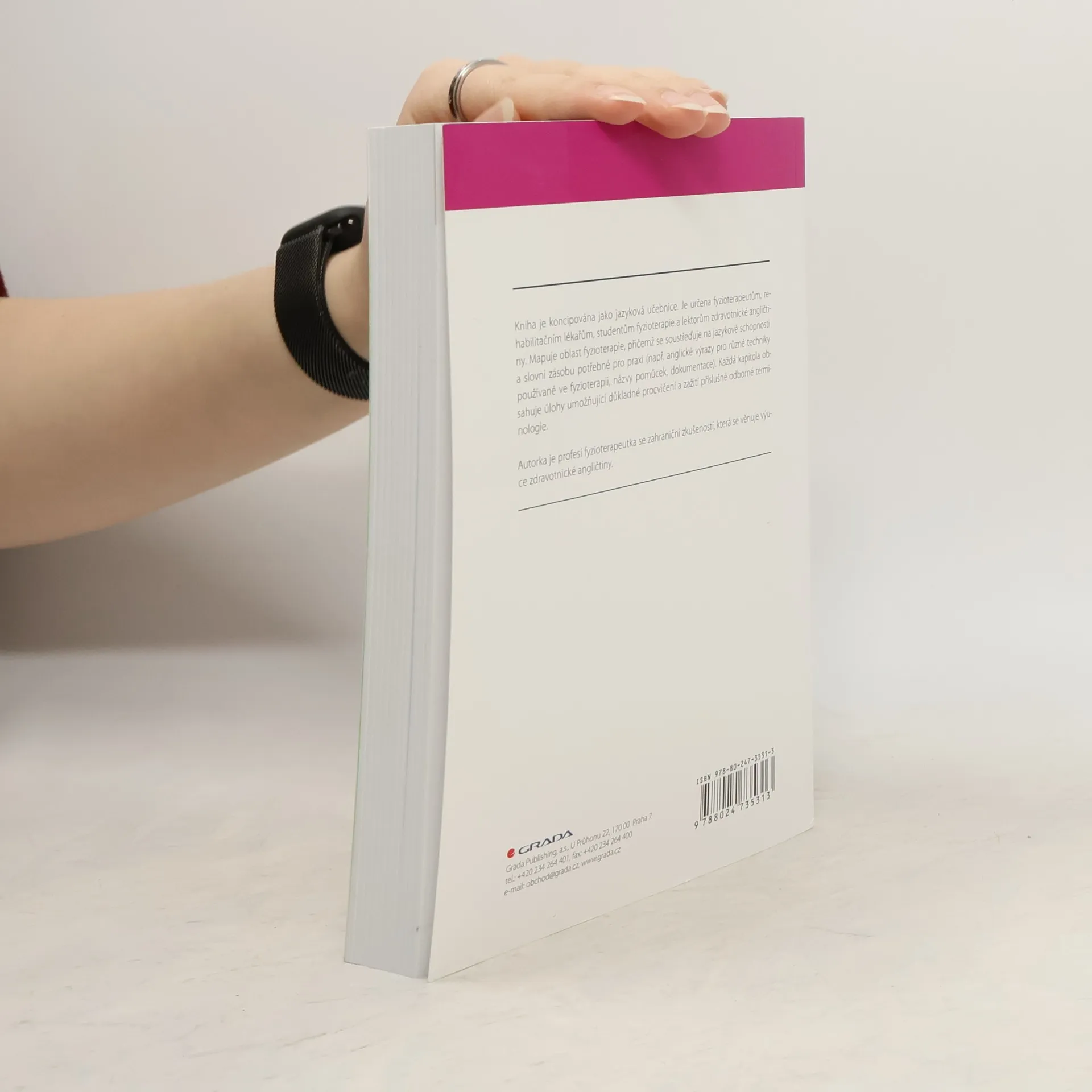 Na českém knižním trhu dosud chybějící publikace určená fyzioterapeutům, rehabilitačním lékařům, studentům fyzioterapie a lektorům zdravotnické angličtiny. Nepostradatelná příručka také pro ty, kteří se chystají vycestovat za prací či studiem do anglicky mluvících zemí. Dílo přehledně mapuje oblast fyzioterapie, přičemž se soustřeďuje na jazykové schopnosti a slovní zásobu potřebné pro praxi. Kniha je koncipována jako jazyková učebnice, každá kapitola obsahuje úlohy, umožňující důkladné procvičení a zažití příslušné odborné terminologie. Autorka je profesí fyzioterapeutka se zahraniční zkušeností, která se věnuje výuce zdravotnické angličtiny.
