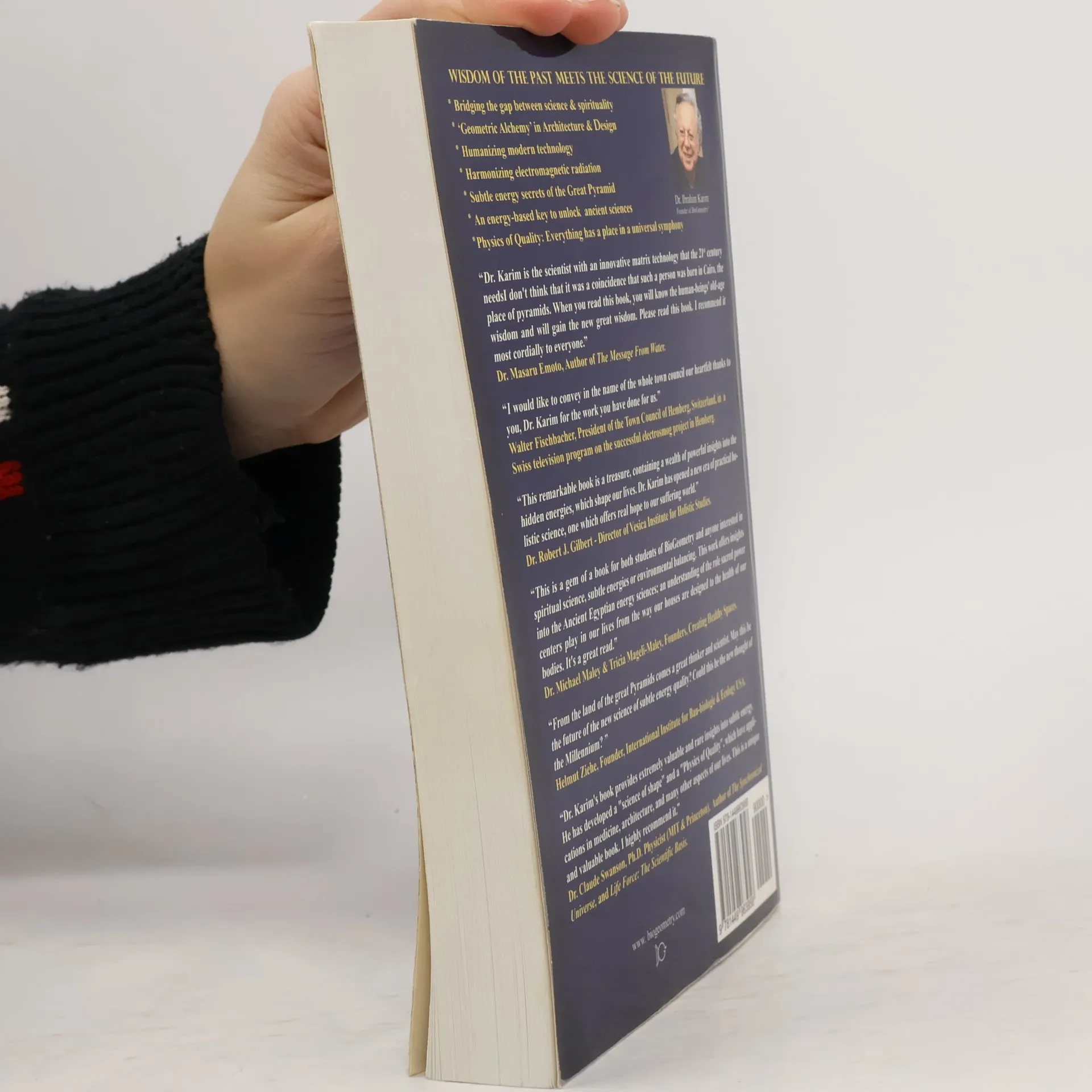This first-ever published collection of writings by Dr. Ibrahim Karim reflects the holistic essence of his worldview. Dr Karim is the founder of the Science of BioGeometry in the early 1970s. BioGeometry is the science that uses shapes, colors, motion and sound to induce harmony into the subtle energy qualities of the environment. At the core of this harmony is a subtle energy quality found in the transcendental centers of the forming process of nature and is the main quality in sacred power spots of humanity that give a spiritual dimension to the timeless monuments erected since the dawn of humanity. With his experience as an architect and a scientist Dr. Karim has synergized aspects of Pythagorean Harmonics, Subtle energy sciences, Radiesthesia, Geobiology, Building Biology, Sacred Architecture & modern wave theories to produce a new Physics of Quality from which the science of BioGeometry emerged. *BioGeometry bridges science and spirituality to produce a natural harmony into the environment. *BioGeometry provides a viable solution in transforming the quality of the effect that electromagnetic radiation has on living systems. Successful projects in Switzerland in collaboration & acknowledgment of Swiss authorities prove its efficiency to take our modern science into the future. *BioGeometry provides new solutions to Earth Radiation, which is a serious health hazard if not acknowledged in the location and design of our buildings. * A new energy-quality-based analysis of the Great Pyramid in Giza, reveals new knowledge on the foremost of the wonders of the world and on the essence of the great Ancient Egyptian civilization.