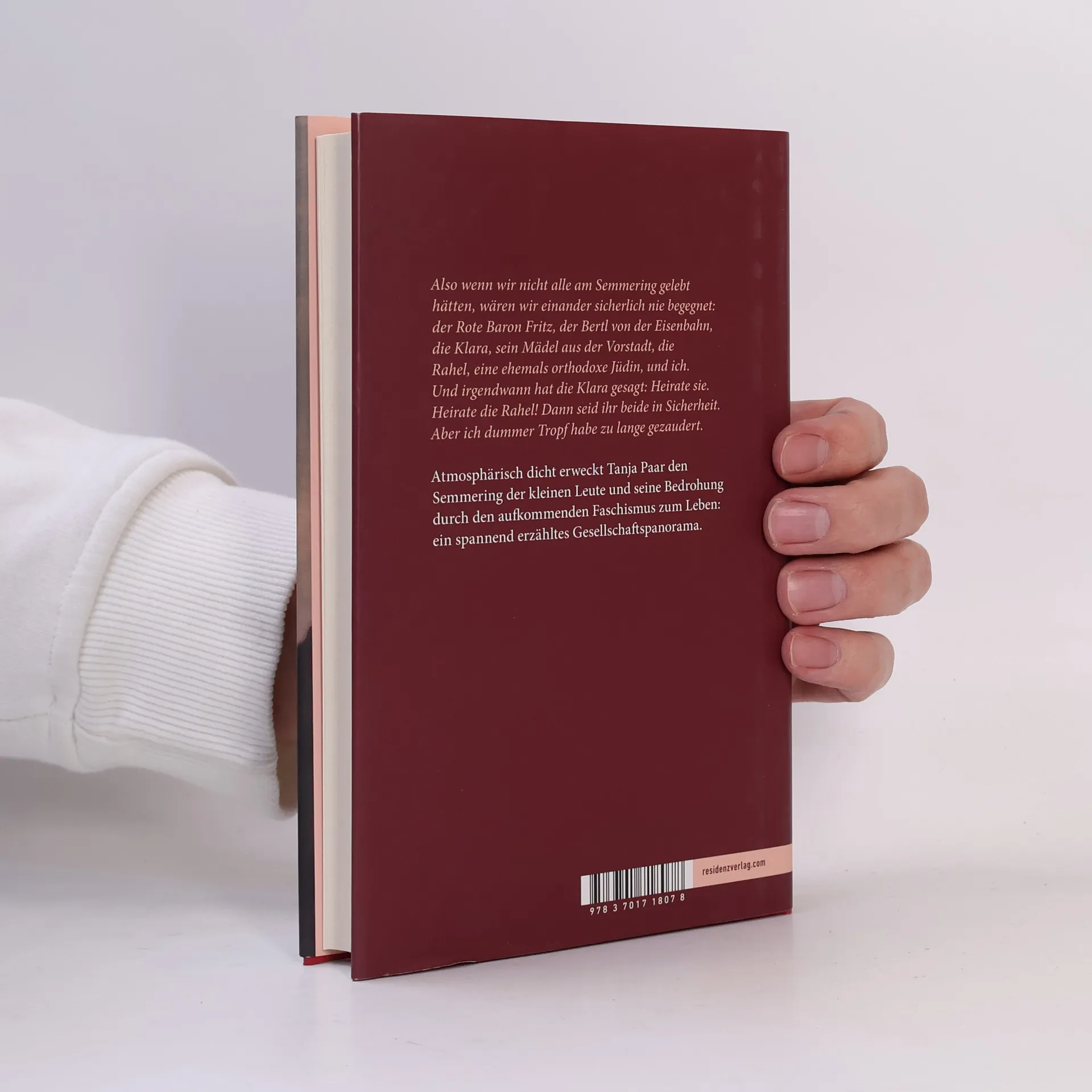 Für den Eisenbahner Bertl und seine Frau Klara bedeutet der Semmering einen Aufstieg: Die Beförderung zum Stationsvorsteher und ein Häuschen mit Garten sind in Zeiten von Wirtschaftskrise und Arbeitslosigkeit viel. Mit Schwung und Liebe zum Detail erzählt Tanja Paar von der Welt hinter den Kulissen der noblen Sommerfrische, von Dienstmädchen und Holzknechten, Groß- und Kleinbauern, vom Postfräulein Negrelli und von Rahel, die für die jüdischen Gäste koscher kocht. Immer stärker werden die politischen Konflikte auch im Kurort abseits der Großstadt Wien spürbar, und als die Nazis 1938 die Macht ergreifen, gerät die gefährdete Idylle gänzlich aus den Fugen. Wird Klara ihre Freundin Rahel vor der Deportation retten können?