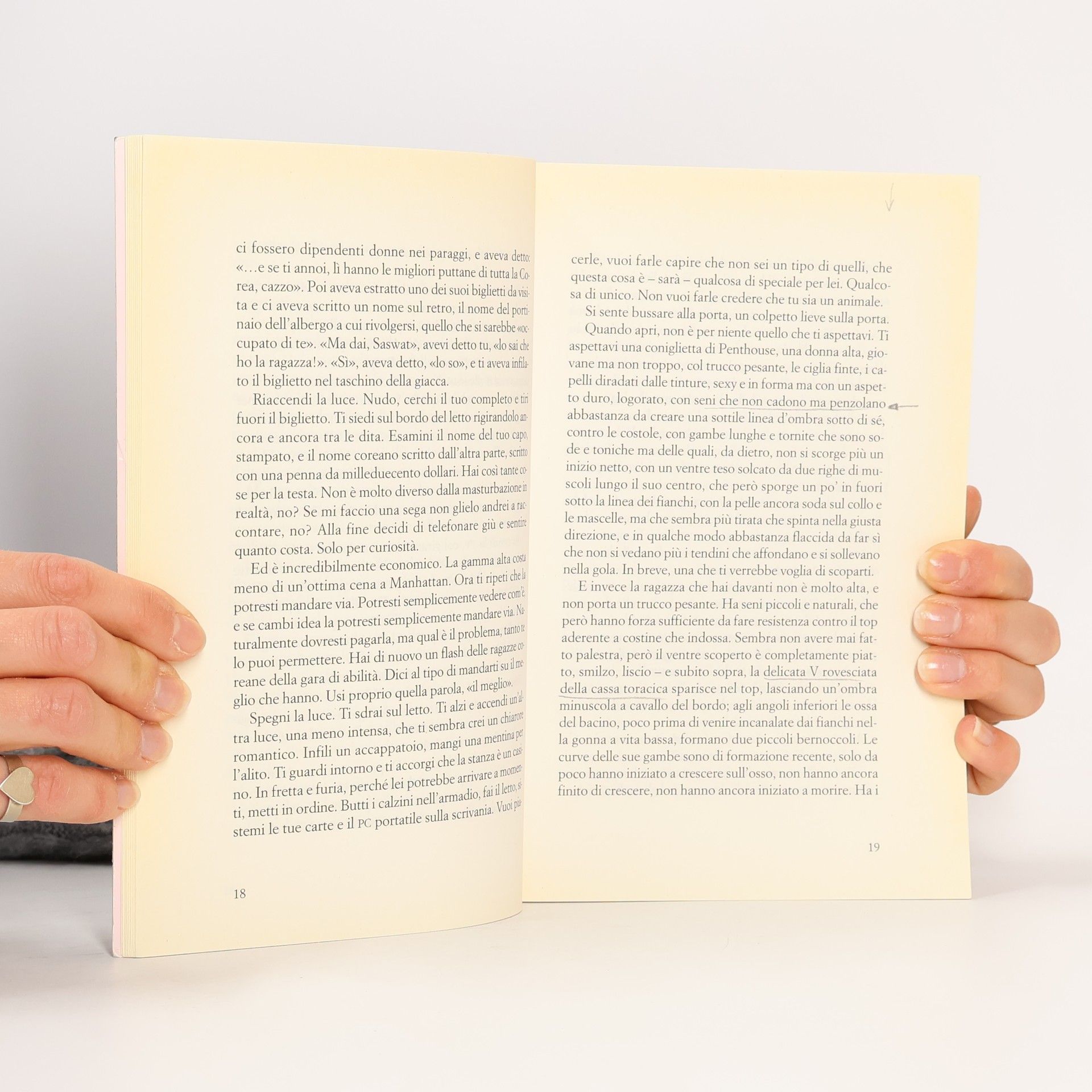 Girls is an erotic spree, a journey into the most forbidden corners of male desire, a story about men who have been rendered numb by their power, who have sacrificed everything for success, who have lost their souls and can find meaning only by living vicariously, obsessively through young women. These are the men who wear a ring that says "Peace" or "Dream More" (which she gave them). But they are not at peace; the ring won't work. These are the men who left their safe lives, their wives; lust sets them free/is like a prison. They have replaced their old dreams with dreams of the girls they yearn for. Because the wide-eyed wonder of youth gives them back a taste of what they've lost.