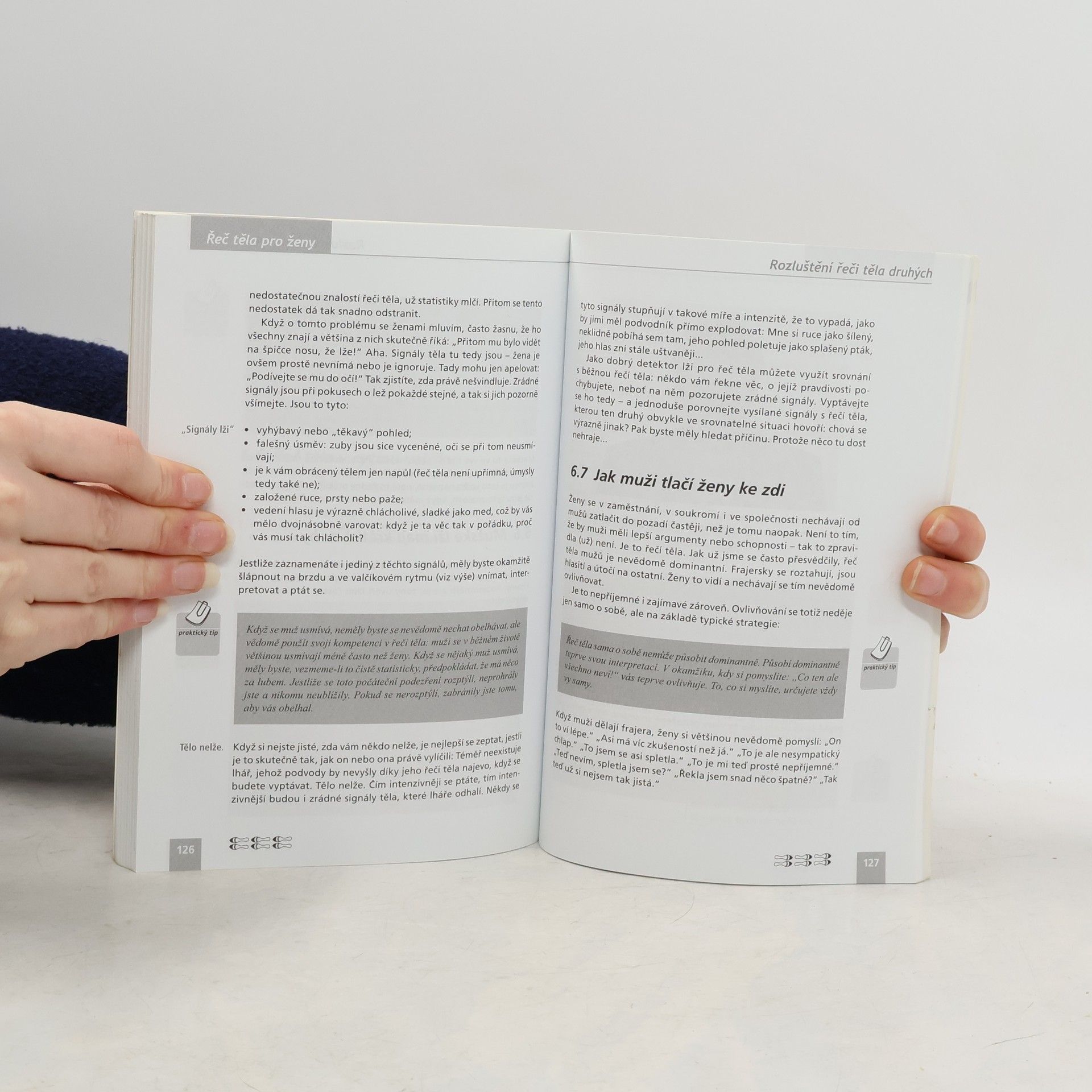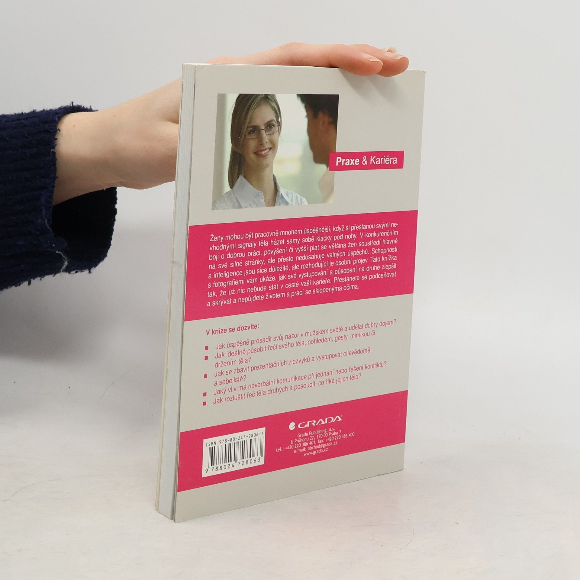 Ženy mohou být pracovně mnohem úspěšnější, když si přestanou svými nevhodnými signály těla házet samy sobě klacky pod nohy. V konkurenčním boji o dobrou práci, povýšení či vyšší plat se většina žen soustředí hlavně na své silné stránky, ale přesto nedosahuje valných úspěchů. Schopnosti a inteligence jsou sice důležité, ale rozhodující je osobní projev. Tato knížka s fotografiemi vám ukáže, jak své vystupování a působení na druhé zlepšit tak, že už nic nebude stát v cestě vaší kariéře. Přestanete se podceňovat a skrývat a nepůjdete životem a prací se sklopenýma očima. V knize se dozvíte: - Jak úspěšně prosadit svůj názor v mužském světě a udělat dobrý dojem? - Jak ideálně působit řečí svého těla, pohledem, gesty, mimikou či držením těla? - Jak se zbavit prezentačních zlozvyků a vystupovat cílevědomě a sebejistě? - Jaký vliv má neverbální komunikace při jednání nebo řešení konfliktu? - Jak rozluštit řeč těla druhých a posoudit, co říká jejich tělo?