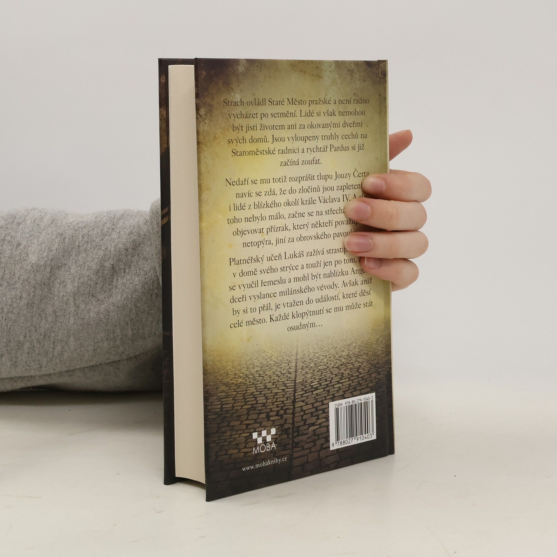 Strach ovládl Staré Město pražské a není radno vycházet po setmění. Lidé si ale nejsou jisti životem ani za okovanými dveřmi svých domů. Jsou vyloupeny truhly cechů na Staroměstské radnici a rychtář Pardus si již začíná zoufat. Nedaří se mu rozprášit tlupu Jouzy Čerta a navíc se jeví, že tlupě pomáhá někdo z blízkého okolí krále Václava IV. A k tomu se ještě na domech a jejich střechách začne objevovat přízrak, který někteří považují za netopýra, jiní za obrovského pavouka. Platnéřský učeň Lukáš zažívá strastiplné roky v domě svého strýce a má jen dvě touhy: vyučit se řemeslu a být v blízkosti Angely, dcery vyslance milánského vévody. Avšak aniž by si to přál, je vtažen do dění, které děsí město, a od té chvíle začíná hon i na něho. Každé jeho klopýtnutí může být tím posledním...