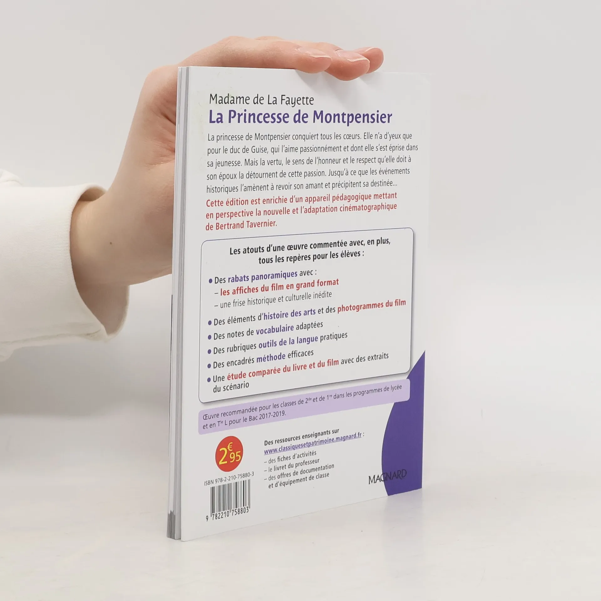 La princesse de Montpensier conquiert tous les coeurs. Elle n'a d'yeux que pour le duc de Guise, qui l'aime passionnément et dont elle s'est éprise dans sa jeunesse. Mais la vertu, le sens de l'honneur et le respect qu'elle doit à son époux la détournent de cette passion. Jusqu'à ce que les événements historiques l'amènent à revoir son amant et précipitent sa destinée... Cette édition est enrichie d'un appareil pédagogique mettant en perspective la nouvelle et l'adaptation cinématographique de Bertrand Tavernier.