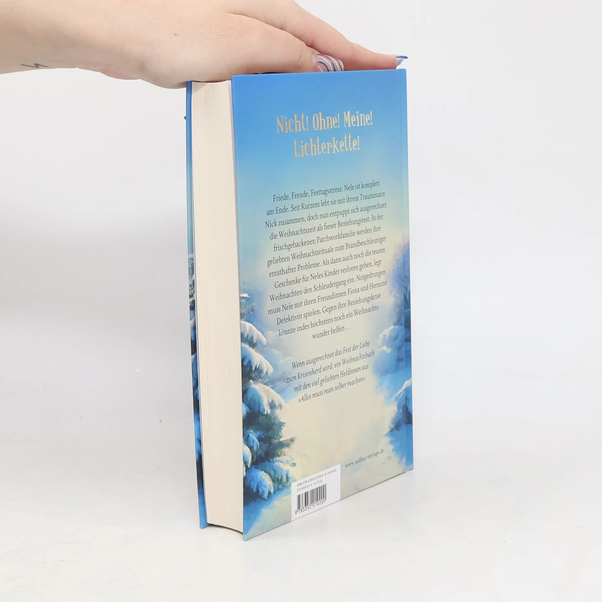 Nicht! Ohne! Meine! Lichterkette! – Wenn ausgerechnet das Fest der Liebe zum Beziehungstest wird Friede, Freude, Weihnachtsstress: Nele ist komplett am Ende. Seit Kurzem lebt sie mit ihrem Traummann Nick zusammen, doch nun entpuppt sich ausgerechnet die Weihnachtszeit als fieser Beziehungstest: Erst nennt er ihre Adventsdeko Kitschkrempel, und dann werden auch noch ihre geliebten Weihnachtsrituale zum Brandbeschleuniger ernsthafter Startschwierigkeiten der frischgebackenen Patchworkfamilie. Als dann auch noch die teuren Präsente für Neles Kinder in der Post verloren gehen, legt Weihnachten den Schleudergang ein. Notgedrungen muss Nele mit ihren Freundinnen Fiona und Hermine Hobbydetektivin spielen. Und erlebt ein echtes Weihnachtswunder … Ein Weihnachtsbuch mit den drei vielgeliebten Heldinnen aus »Alles muss man selber machen« von Bestselleraturin Ellen Berg