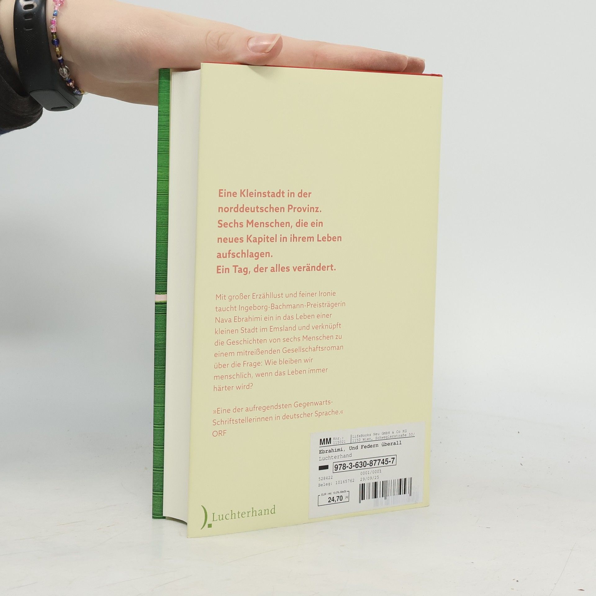In einer deutschen Kleinstadt, wo der Winter nicht enden will, beginnt ein Montagmorgen, der alles verändert. In Lasseren, einem Ort, wo das Leben oft stillsteht, ist der Geflügelschlachthof Möllring der einzige Arbeitgeber. Sonia, eine alleinerziehende Mutter, hofft auf einen Job fernab vom Fließband. Die Ingenieurin Anna steht vor einem entscheidenden Testlauf für ein neues Automatisierungsverfahren, während Merkhausen, ein verlassener Ehemann, auf ein Date am Abend hinfiebert. Der geflüchtete Afghane Nassim, der in eine Beziehung mit der älteren Justyna verwickelt ist, glaubt, dass seine Gedichte die deutschen Beamten beeindrucken können. Roshi, eine deutsch-iranische Autorin, ist extra aus Köln angereist, um Nassims Gedichte zu übersetzen. Als ein rücksichtsloser Fahrradfahrer den Blindenstock eines sehbehinderten Mannes zerstört, wird Nassim durch die Hilfe eines lokalen Radiosenders nicht nur berühmt, sondern regt auch die Menschen an, sich ihrer eigenen Wahrheit zu stellen. Diese Geschichten von sechs Menschen verweben sich zu einem packenden Gesellschaftsroman, der die Frage aufwirft, wie viel Menschlichkeit wir in einer zunehmend harten Welt bewahren können.