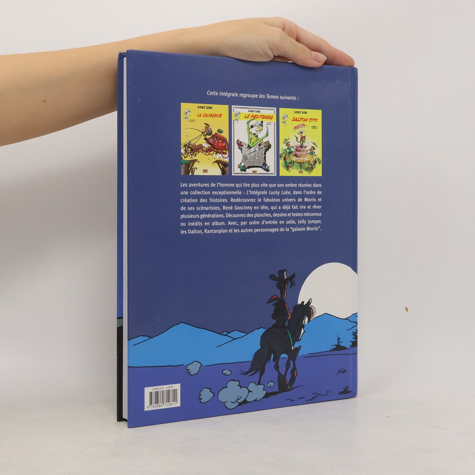 Enfin ! Toutes les aventures de l'homme qui tire plus vite que son ombre, réunies en somptueuses intégrales. A raison de deux volumes par an, vous allez retrouver des histoires devenues des classiques, où se côtoient les Dalton, Rantanplan et bien d'autres personnages. Chacun de ses volumes, réunissant trois histoires, sera précédé de quelques pages évoquant, en textes et dessins, l'univers de Morris. Intégrale comprenant :"La Diligence", "Dalton City" et "Le Pied Tendre".