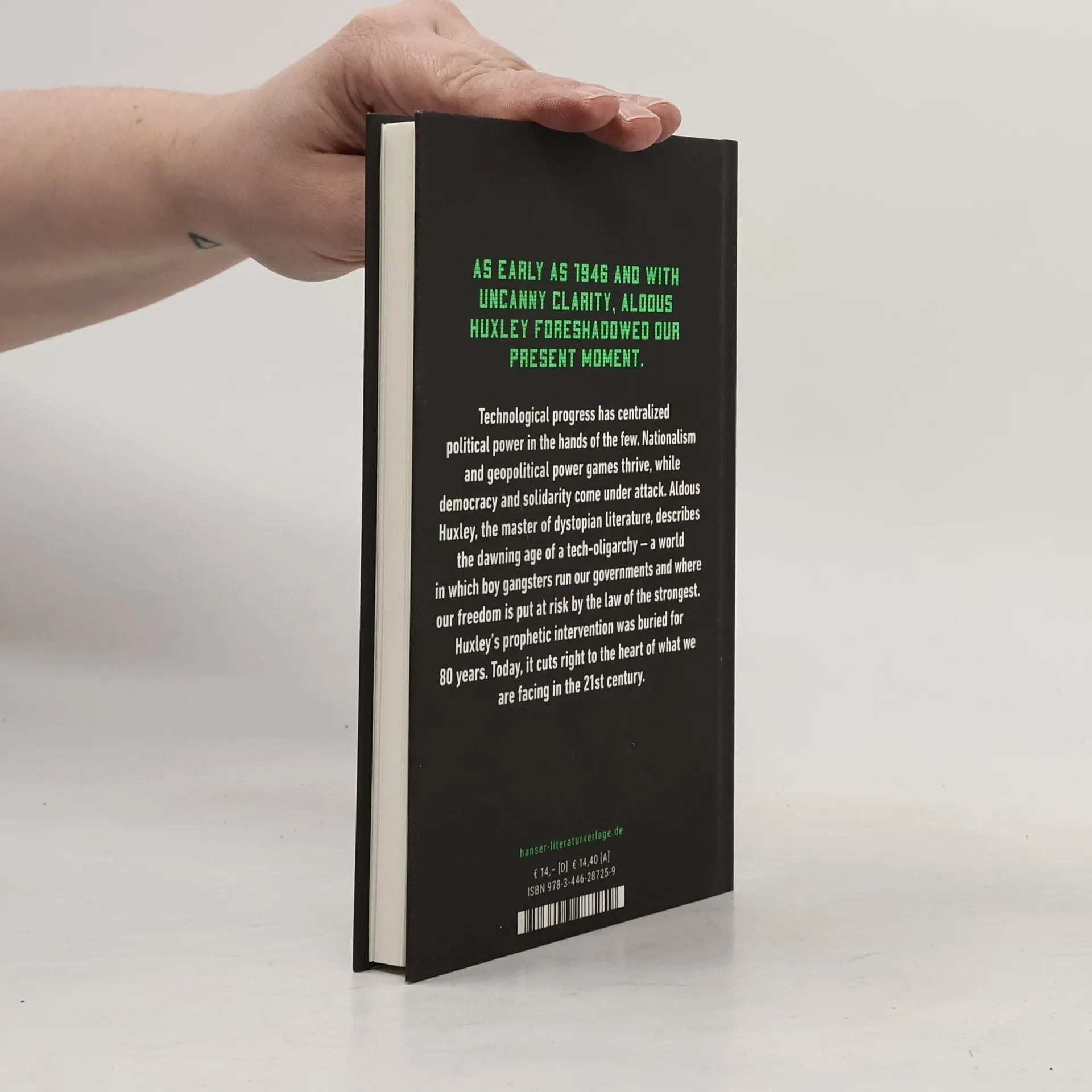 As early as 1946 and with uncanny clarity, Aldous Huxley foreshadowed our present moment where technological progress has centralized political power in the hands of the few. In times of social upheaval, nationalism and geopolitical power games thrive, while democracy and solidarity come under attack. Aldous Huxley, the master of dystopian literature, describes the dawning age of a tech-oligarchy – a world in which boy gangsters run our governments and where our freedom is put at risk by the law of the strongest. Huxley’s prophetic intervention was buried for 80 years. Today, it cuts right to the heart of what we are facing in the 21st century.