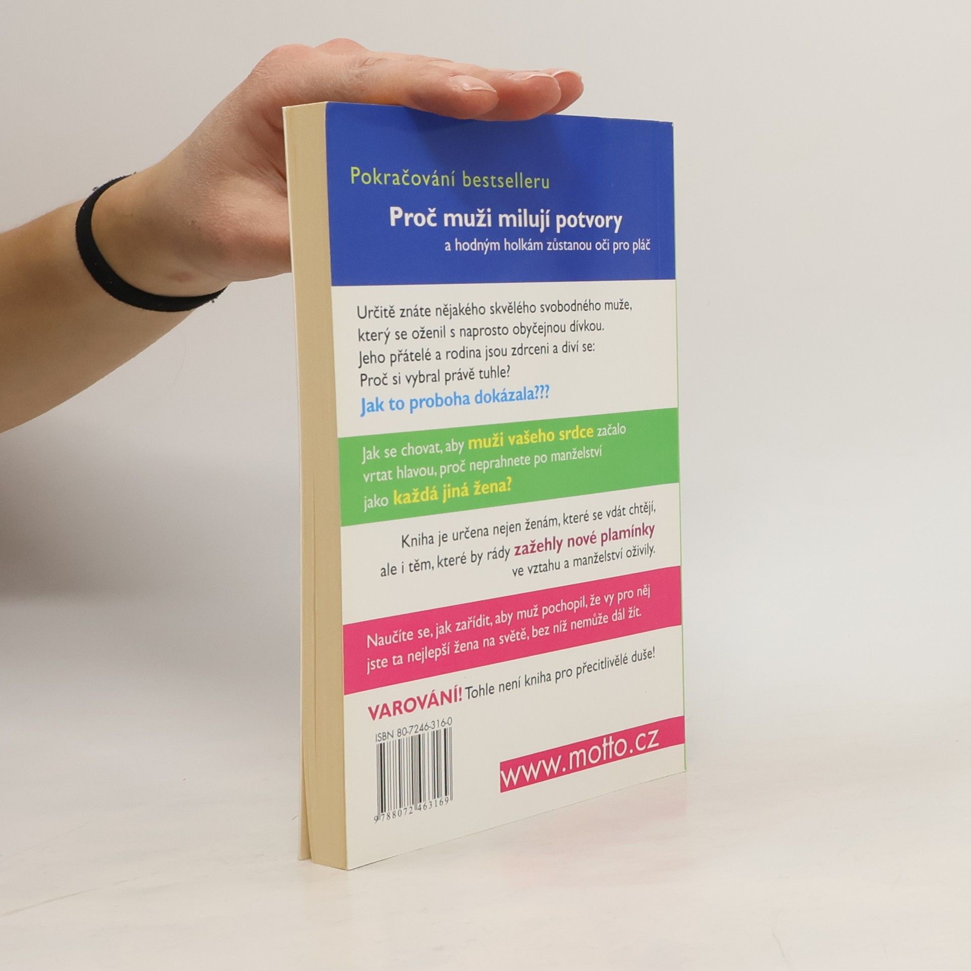 Pokračování bestselleru: Proč muži milují potvory a hodným holkám zůstanou oči pro pláč. Pro všechny ženy, které touží po vdavkách! Určitě znáte nějakého skvělého svobodného muže, který se oženil s naprosto obyčejnou dívkou. Jeho přátelé a rodina jsou naprosto zdrceni a diví se: Proč si vybral právě tuhle? Jak to proboha dokázala? Kniha je určena nejen ženám, které se vdávat chtějí, ale i těm, které by rády zažehly nové plamínky ve vztahu a manželství oživily.