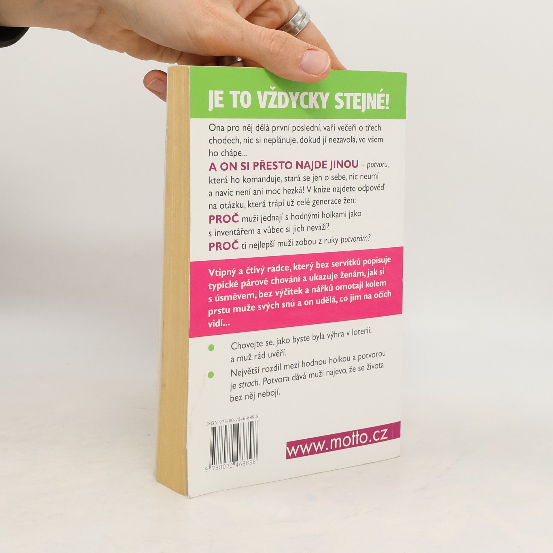 Nové, rozšířené vydání! Proč muži jednají s hodnými holkami jak s inventářem, ale zobou z ruky potvorám? Vtipná kniha, která otevřeně a bez zastírání popisuje typické párové chování. Poradí vám, jak si s úsměvem, bez výčitek a nářků, omotáte kolem prstu muže svých snů. Dotisk v roce 2019.