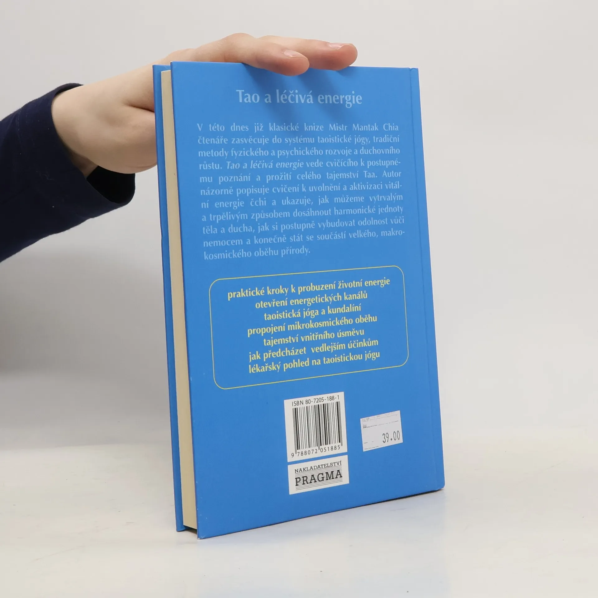 V této dnes již klasické knize Mistr Mantak Chia čtenáře zasvěcuje do systému taoistické jógy, tradiční metody fyzického a psychického rozvoje a duchovního růstu. Tao a léčivá energie vede cvičícího k postupnému poznání a prožití celého tajemství Taa. Autor názorně popisuje cvičení k uvolnění a aktivizaci vitální energie čchi a ukazuje, jak můžeme vytrvalým a trpělivým způsobem dosáhnout harmonické jednoty těla a ducha, jak si postu pně vybudovat odolnost vůči nemocem a konečně stát se součástí velkého makrokosmického oběhu přírody. . praktické kroky k probuzení životní energie . otevření energetických kanálů . taoistická jóga a kundalíní . propojení mikrokosmického oběhu . tajemství vnitřního úsměvu . jak předcházet vedlejším účinkům . lékařský pohled na taoistickou jógu