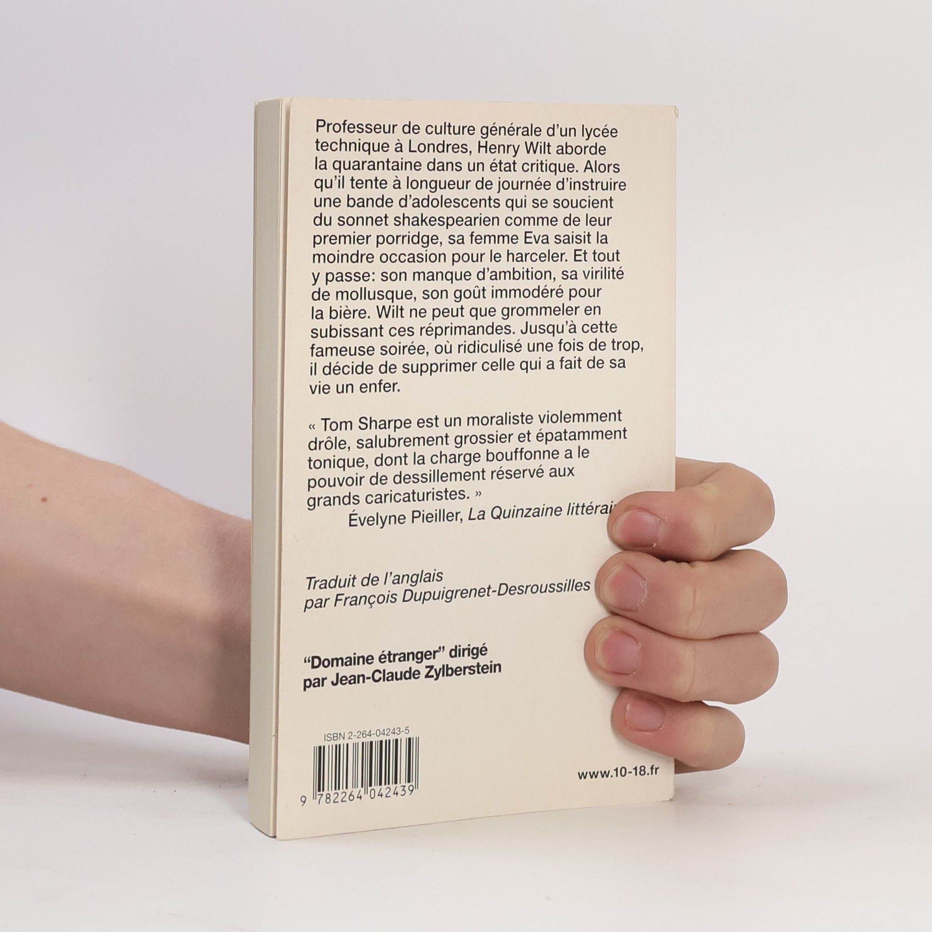 C'est en sortant son chien que Wilt réfléchit à la méthode la plus efficace pour se débarrasser de sa femme, devenue bien trop encombrante à son goût. Wilt est à la croisée des chemins : professeur de culture générale dans un lycée technique pour étudiants demeurés, sa carrière est au point mort. Marié depuis bien trop longtemps à une femme frustrée et complexée, Wilt est en quête d'absolu. Il rêve de gloire, une gloire que le monde lui refuse depuis trop longtemps, et de crime, un crime dont il est sûr qu'il ferait craquer les derniers verrous qui ligotent son existence. Bref, Wilt est en crise, la crise de la quarantaine, identitaire et profonde mais incapable de prendre une décision radicale. La rencontre de sa femme avec une (fausse) riche voisine, adepte des jeux du sexe et des mauvais coups, va plonger la famille Wilt dans une centrifugeuse d'événements des plus inattendus... Tom Sharpe est sans aucun doute l'un des écrivains anglais les plus drôles de sa génération. Et Wilt l'idéale créature de son imaginaire littéraire. Cette critique de la déraison pure, drôle à souhait, n'en est pas moins une hilarante mais brillante mise en cause de notre société de consommation et des valeurs de la bourgeoisie. --Hector Chavez