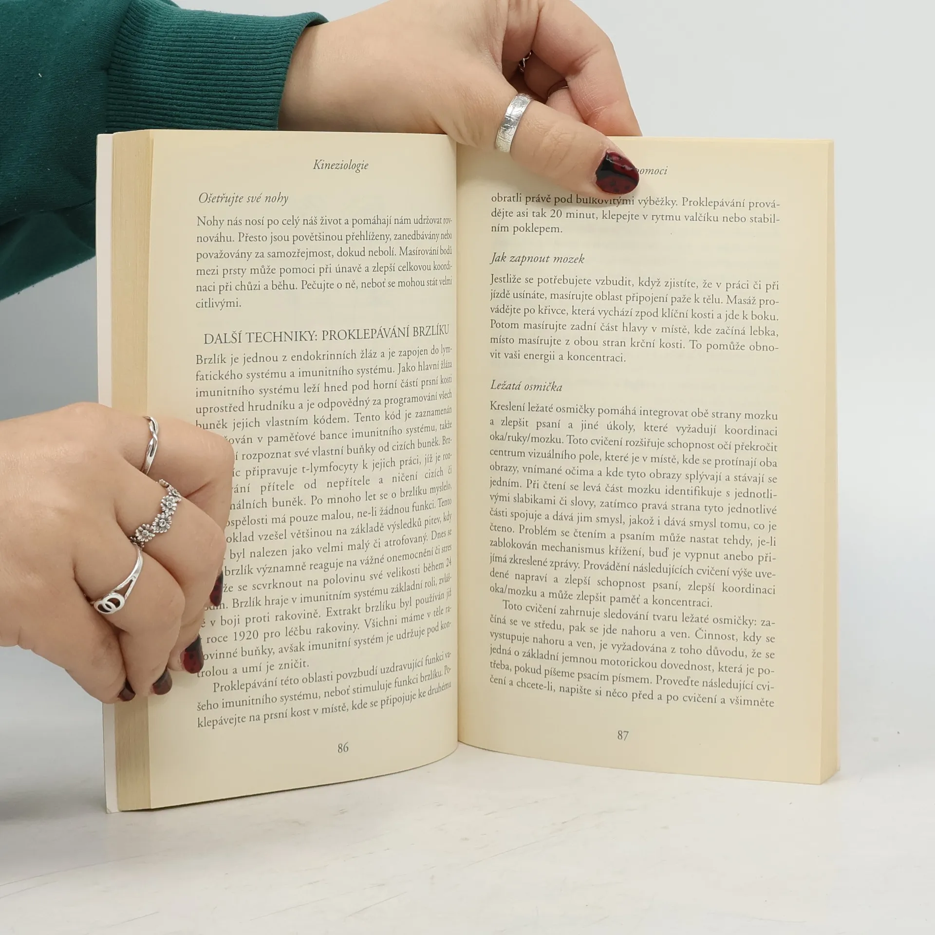 Výklady o kineziologii, jako holistické léčebné metodě, která aktivací určitých bodů nastoluje tok energie v těle a přivádí tělo do rovnováhy.