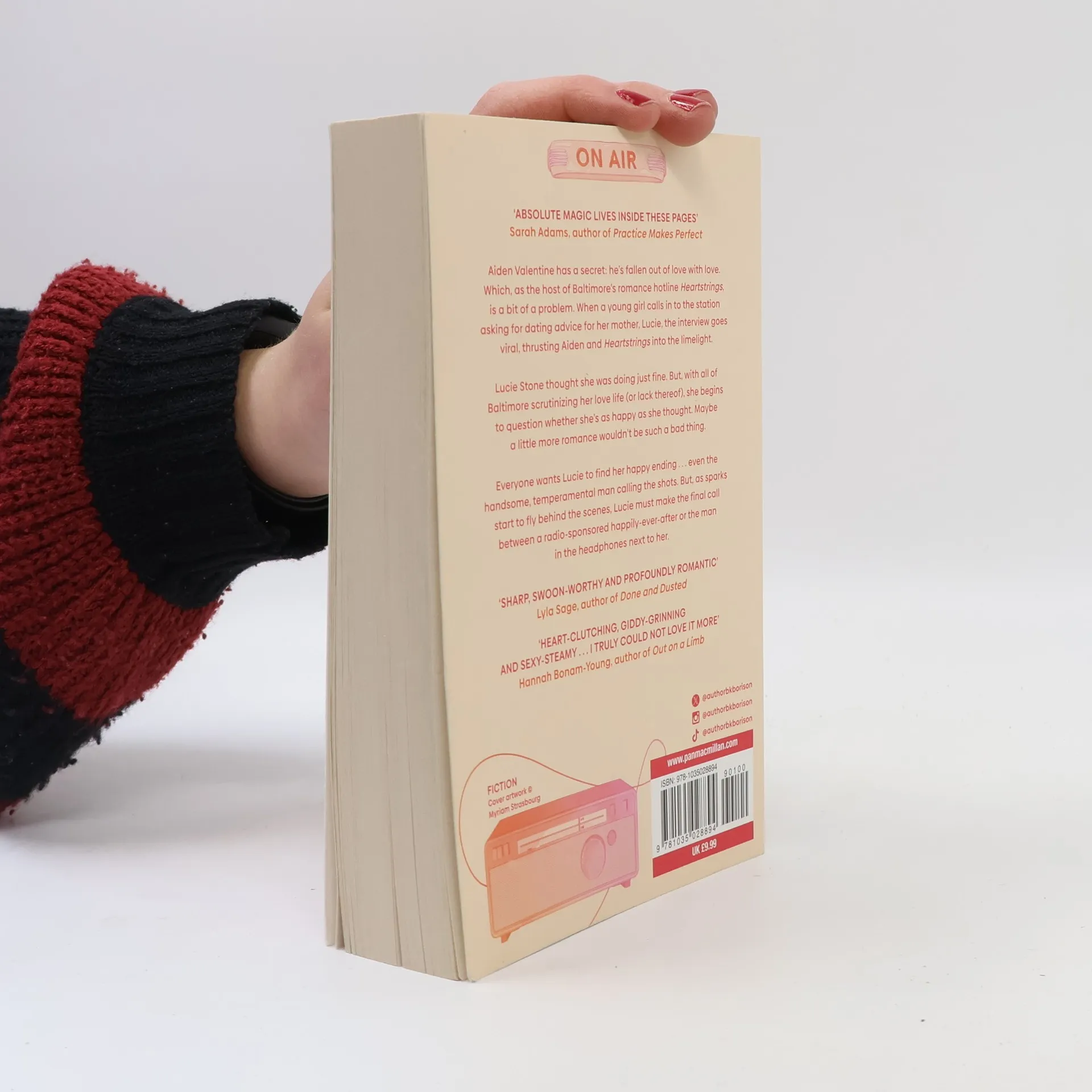 INSTANT NEW YORK TIMES BESTSELLER A hopeless romantic meets a jaded radio host in this cozy, Sleepless in Seattle–inspired love story from beloved author B.K. Borison. Aiden Valentine has a secret: he’s fallen out of love with love. And as the host of Baltimore’s romance hotline, that’s a bit of a problem. But when a young girl calls in to the station asking for dating advice for her mom, the interview goes viral, thrusting Aiden and Heartstrings into the limelight. Lucie Stone thought she was doing just fine. She has a good job; an incredible family; and a smart, slightly devious kid. But when all of Baltimore is suddenly scrutinizing her love life—or lack thereof—she begins to question if she’s as happy as she believed. Maybe a little more romance wouldn’t be such a bad thing. Everyone wants Lucie to find her happy ending…even the handsome, temperamental man calling the shots. But when sparks start to fly behind the scenes, Lucie must make the final decision between the radio-sponsored happily ever after or the man in the headphones next to her.
