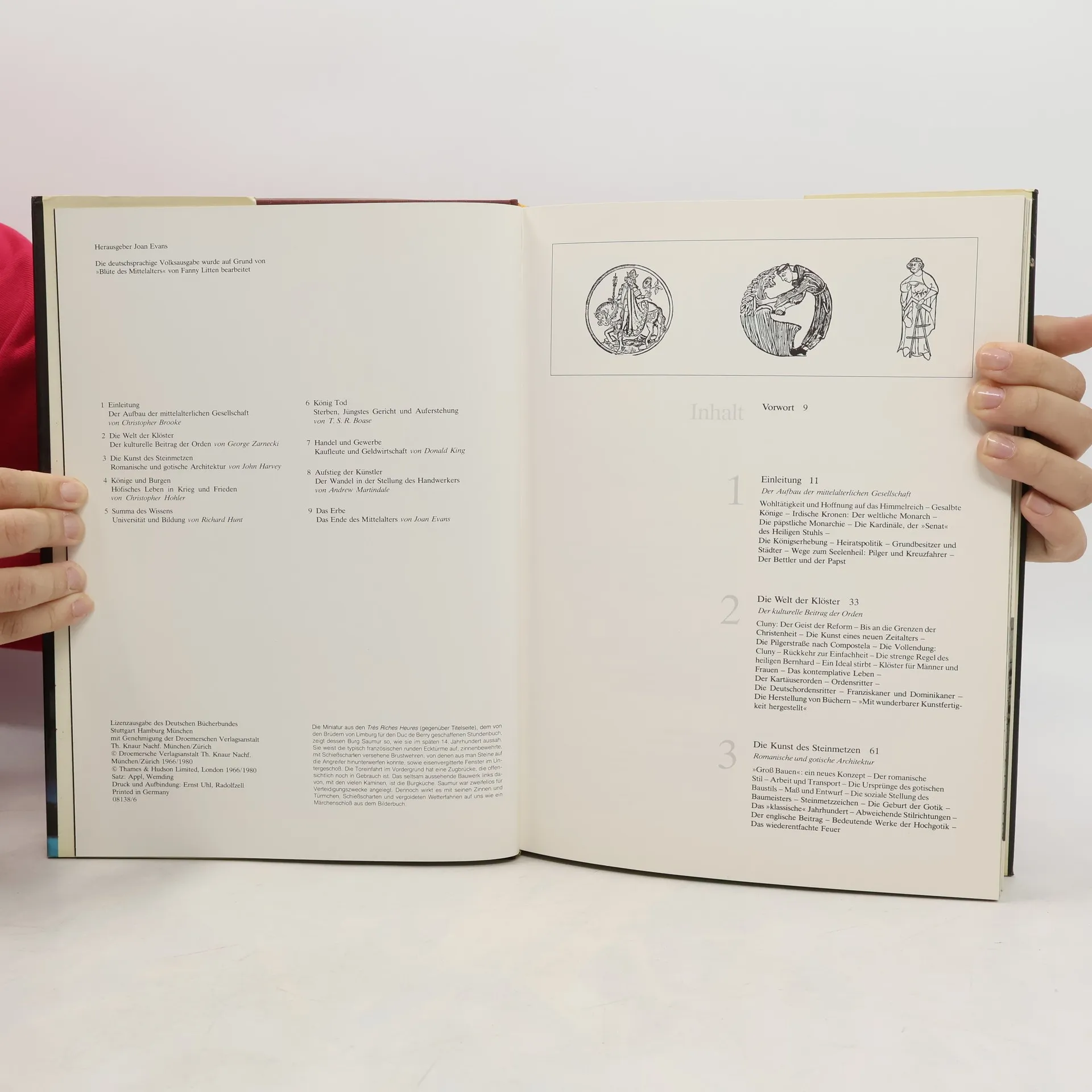 In neun Kapiteln wird das mittelalterliche Leben in allen seinen Schattierungen ungemein lebendig und anschaulich dargestellt. In Bild und Text ersteht vor unseren Augen jene trotz Krieg und Grausamkeit, Not und Tod so farbenprächtige und blühende Welt - das abendländische Mittelalter: Ritter-und Kaiserherrlichkeit - Die beschaulich-stille Welt der Klöster und Mönche - Glühende Frömmigkeit - Üppiger Lebensgenuß und demütige Todeserwartung - Aufblühende Wissenschaft und Bürgerfleiß - Kaufleute und Geldwirtschaft - Könige und Burgen.