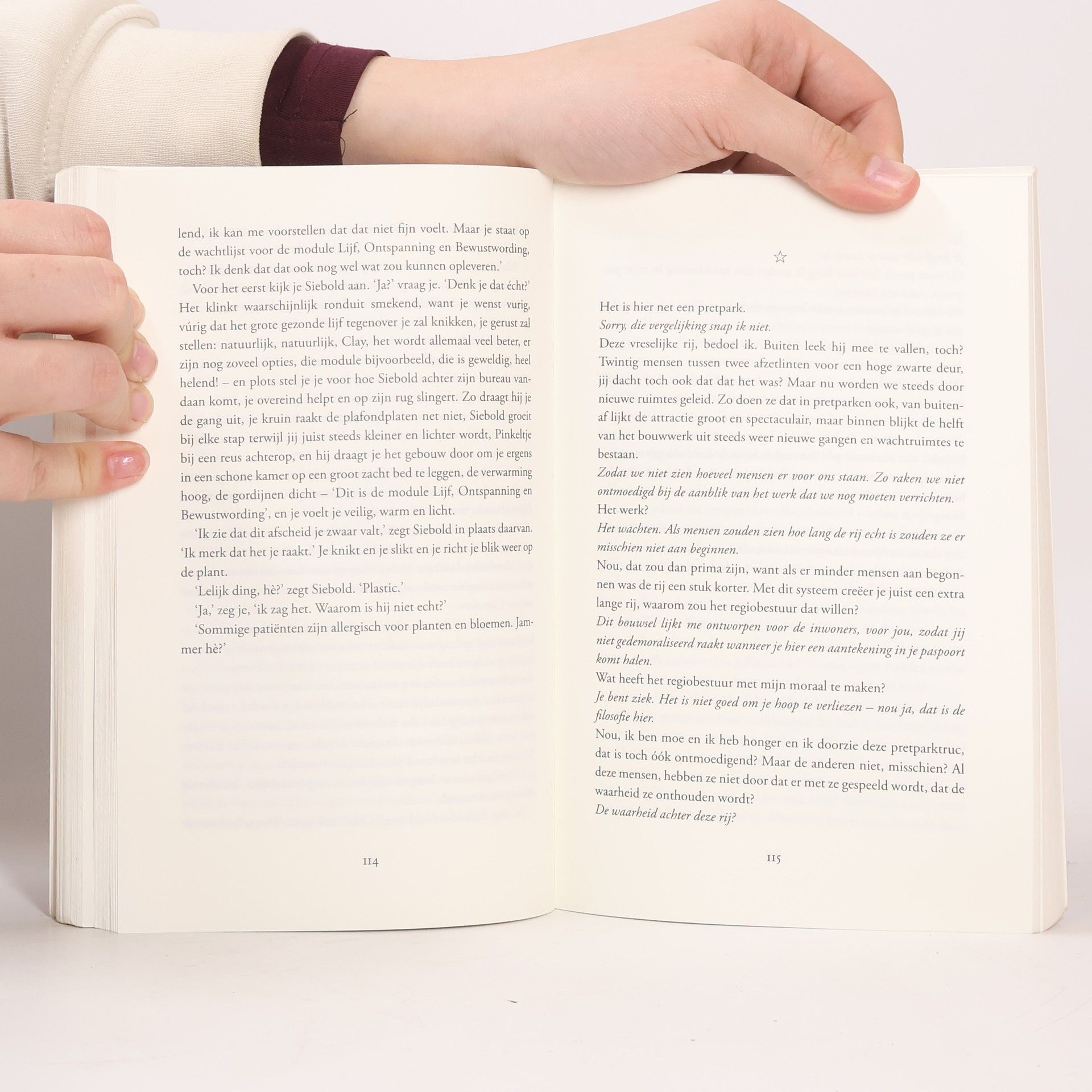 Na een bezoek aan een boerderij wordt Clay ziek en ontwikkelt hij koorts, wat hem in een levensbedreigende situatie brengt. Wanneer de koorts afneemt, blijft de vermoeidheid en krijgt hij chronische pijn. De diagnose is Q-koortsvermoeidheidssyndroom. In zijn zoektocht naar genezing leert Clay zich opnieuw verhouden tot zijn omgeving, zijn vriendin Nora en zijn lichaam. Hij belandt in het Rijk der zieken, een vreemde wereld met ondoorzichtige regels en een onduidelijke eindbestemming. Deze roman biedt een meedogenloos eerlijke blik op ziek zijn en het gebrek aan genezing. De auteur vraagt zich af waarom er zo weinig verhalen zijn over chronisch ziek zijn, over patiënten die niet zullen sterven aan hun aandoening maar ook nooit zullen genezen. Clay's symptomen zijn herkenbaar voor velen met chronische pijn en vermoeidheid, en zijn queeste is geen traditionele zoektocht naar genezing of acceptatie, maar eerder een poging om een verhaal te creëren over zijn nieuwe bestaan. Dit boek is een emigratieverhaal van het Rijk der gezonden naar het Rijk der zieken, en verkent wat we achterlaten wanneer we de controle over ons lichaam verliezen en waar we naartoe gaan in deze nieuwe realiteit.