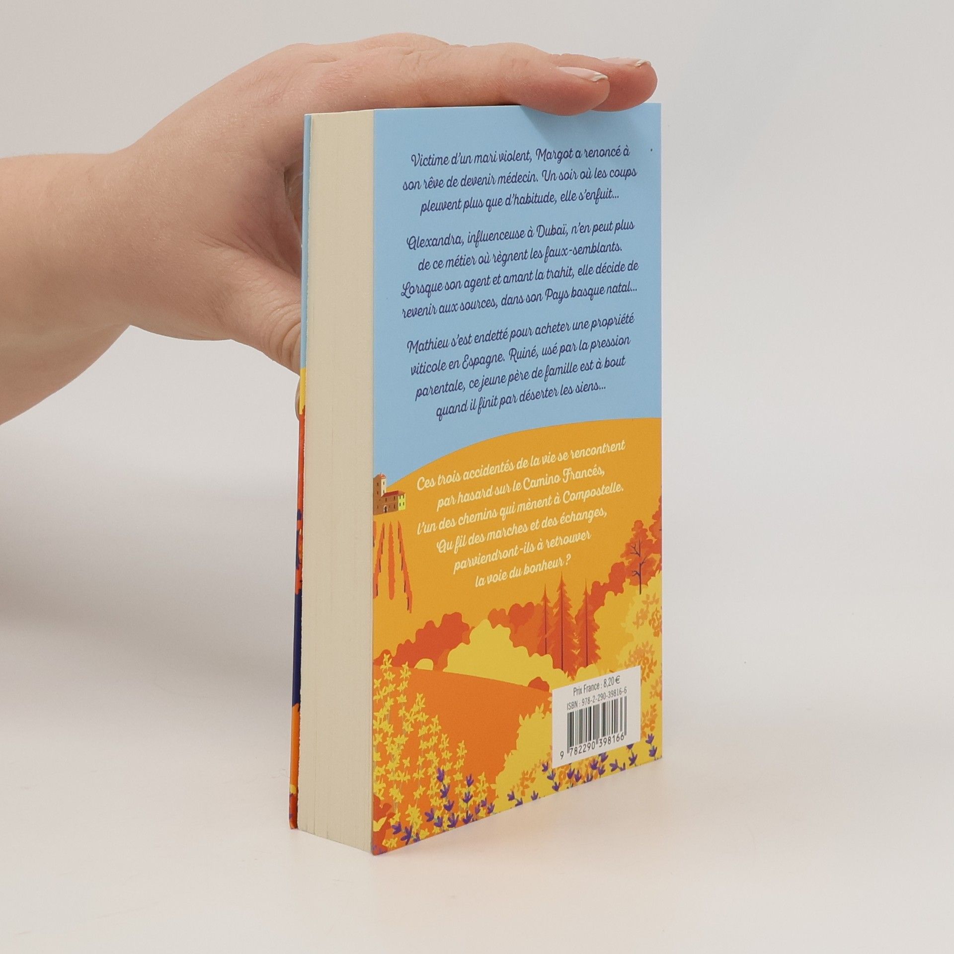« Je m’appelle Margot, j’ai trente-deux ans, je suis hôtesse de caisse dans un hypermarché parisien. J’ai abandonné mon rêve d’enfant : être médecin. Mon mari me bat depuis six ans. Un soir, je me suis enfuie. »« Je m’appelle Alexandra, j’ai vingt-cinq ans, je me suis installée à Dubaï pour gérer ma carrière d’influenceuse. Mais je me suis lassée des paillettes et après la trahison de mon agent, j’ai décidé de rentrer au Pays basque.»« Je m’appelle Mathieu, j’ai trente-sept ans, marié et père d’un jeune garçon, je suis fils de viticulteurs bordelais. Usé par la pression familiale, j’ai racheté une propriété viticole en Espagne, aujourd’hui en liquidation. Poussé par la honte et le désespoir, j’ai déserté, prêt à en finir. »Tous trois se croisent par hasard sur « El Camino Francés », l’un des chemins qui mènent à Compostelle. Ensemble, pas après pas, ils s’autorisent l’espoir de renaître autrement.Chacun, à sa façon, devra trouver son chemin.