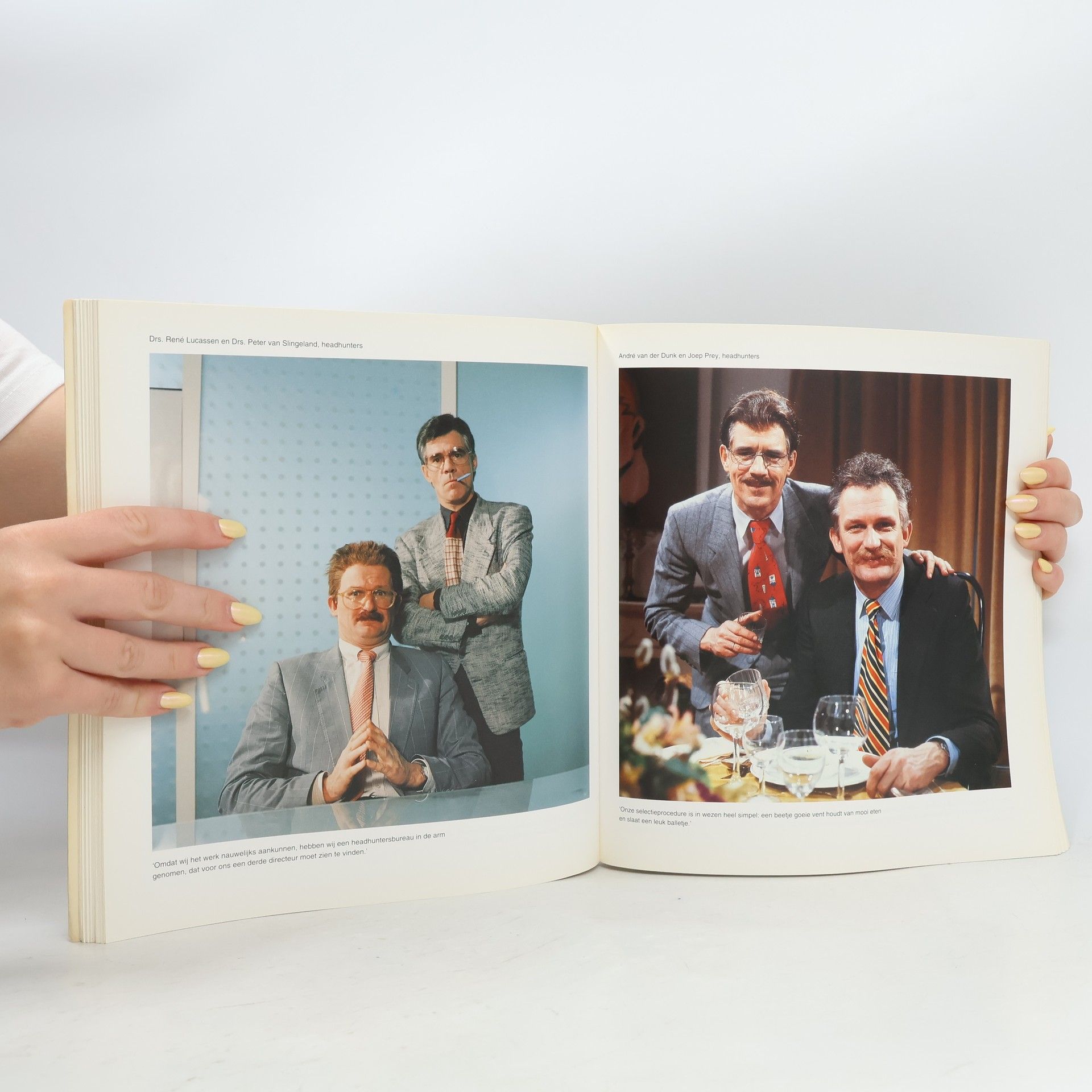 Satirical photos, character studies. Cutlines in Dutch.