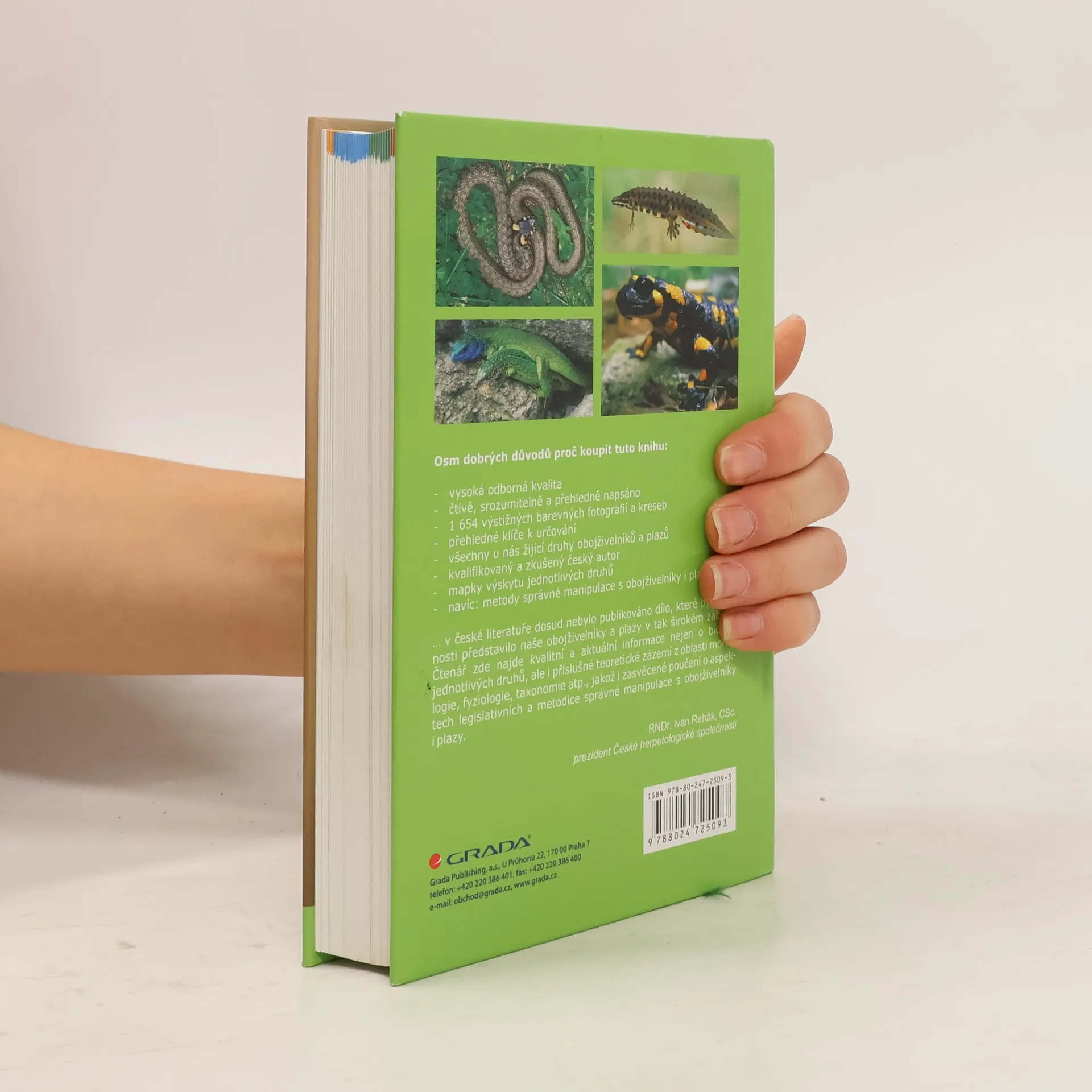 Komplexní publikace českého autora, jediná svého druhu na našem trhu, přináší encyklopedický přehled a určovací klíče všech druhů obojživelníků a plazů, kteří žijí na území České republiky. U každého druhu je podrobný popis, fotografie, určovací znaky, mapa výskytu i variabilita zbarvení. Autor se zabývá také chováním, nároky jednotlivých druhů na životní prostředí, nedestruktivním způsobem studia těchto živočichů a jejich ochranou. Přehledný text doplňuje 1654 barevných fotografií a kreseb. Kniha je určena všem zájemcům o přírodu, školám a těm, kdo se věnují ochraně přírody.